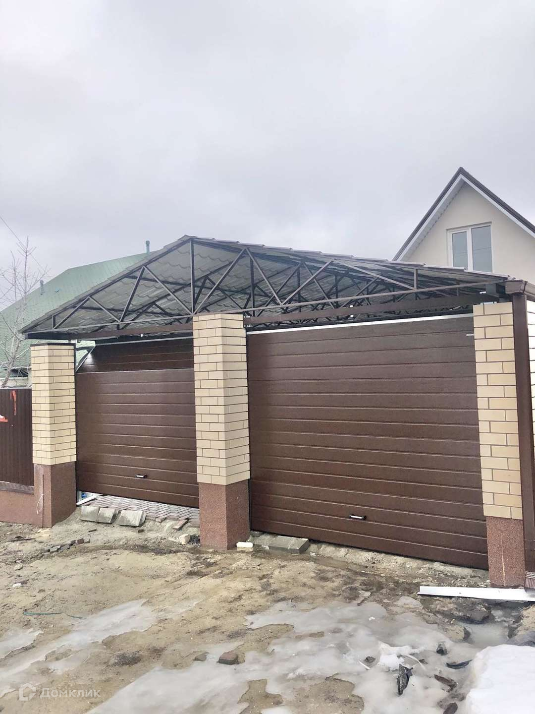 На придомовой территории дорожки и выложены тротуарной плиткой. Имеется навес на две машины(рулонные ворота) и гостевой домик/летняя кухня с чистовой отделкой.
