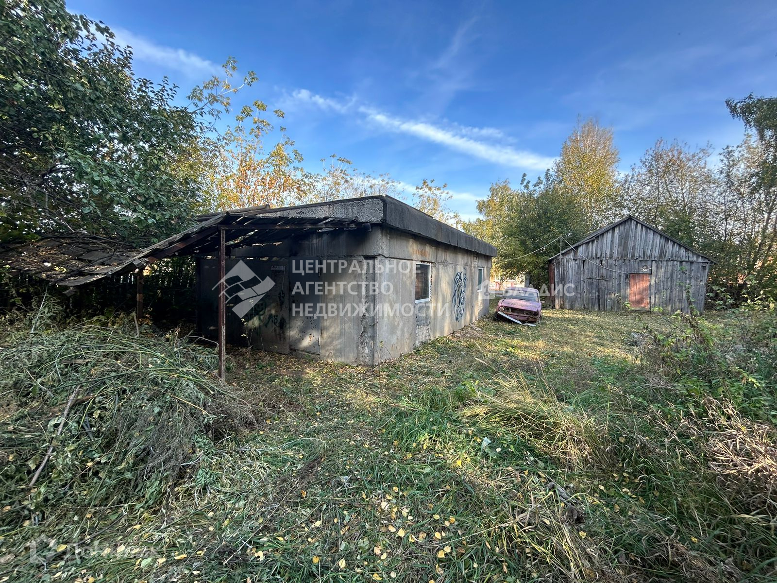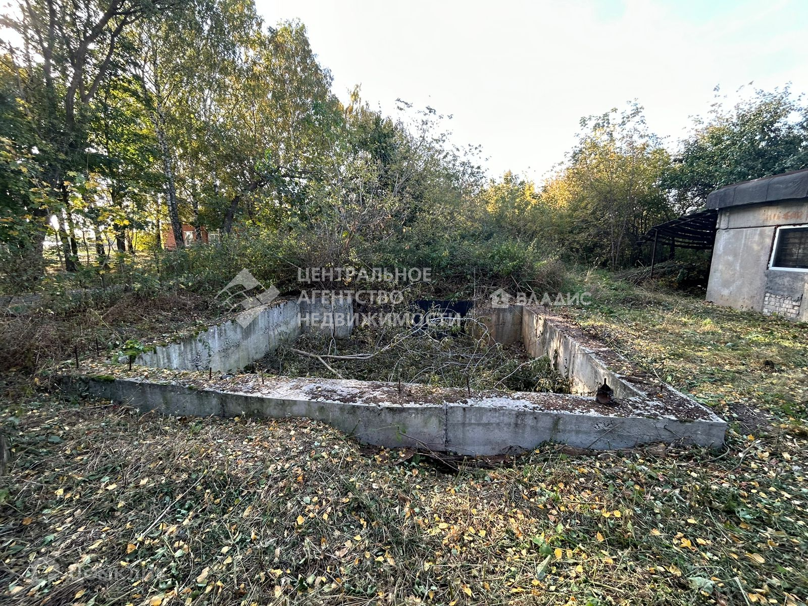 Помимо дома и гаража на участке располагается крепкий фундамент под новый дом размером 7,5м х 7м, глубина 1,8м, толщина 0,5м. Рядом с ним выкопана яма, с расчетом на увеличение имеющегося фундамента.