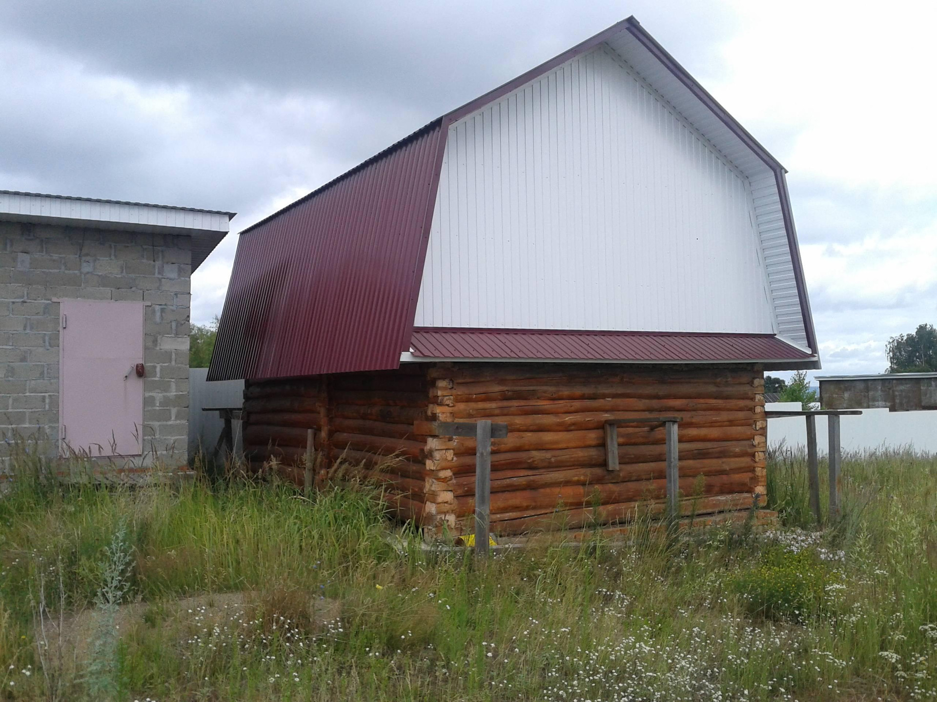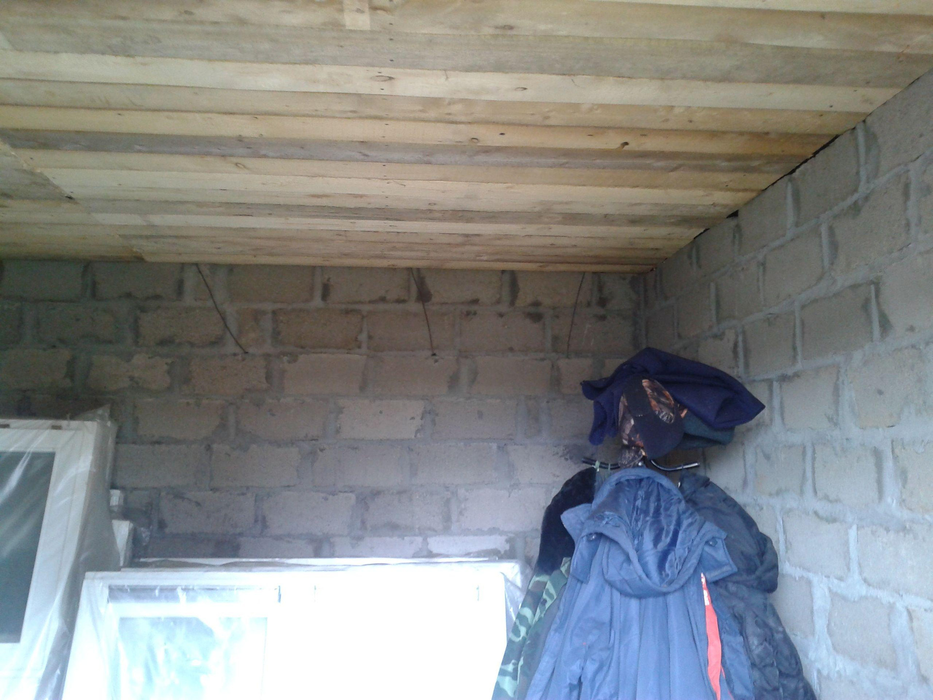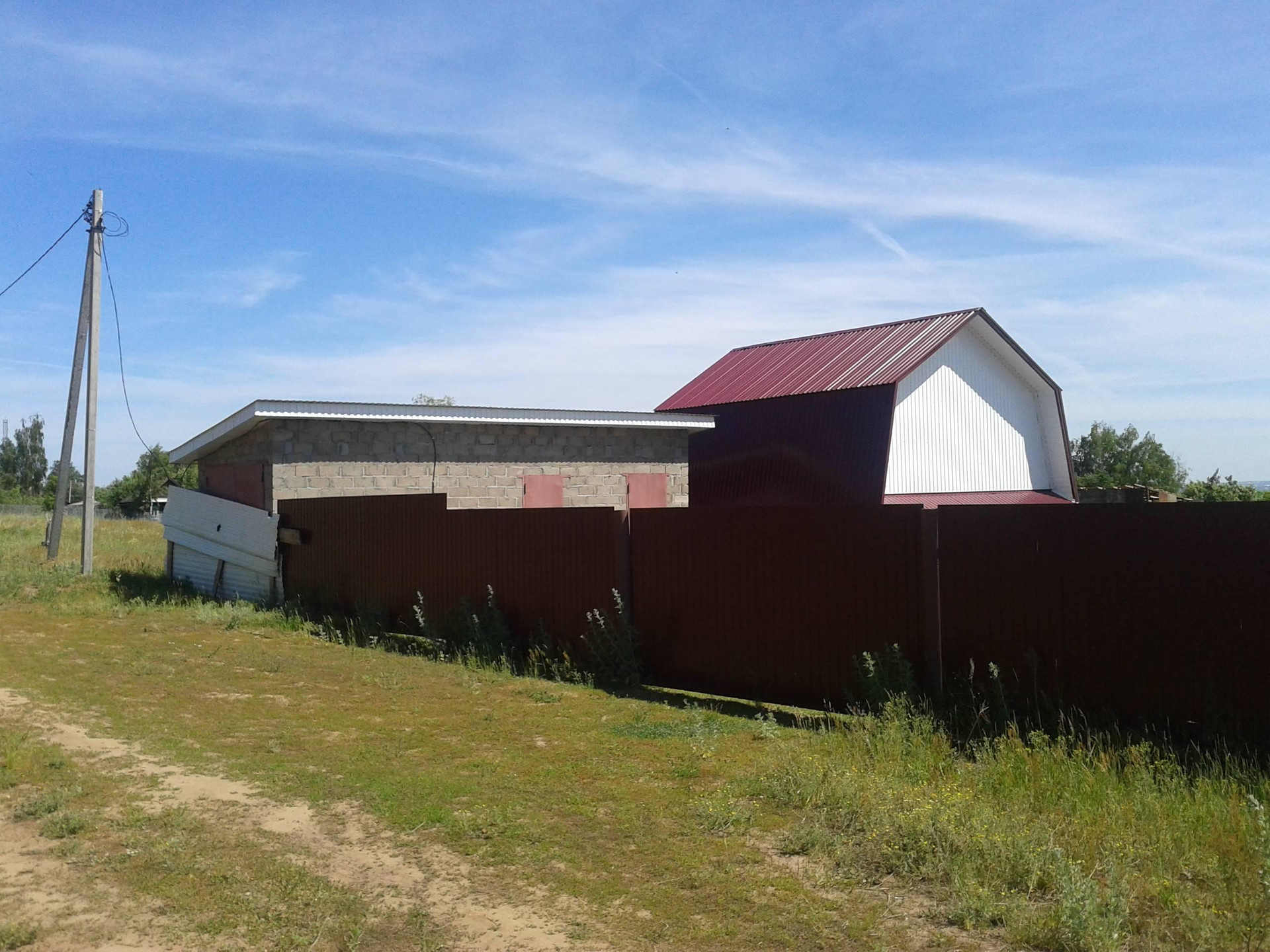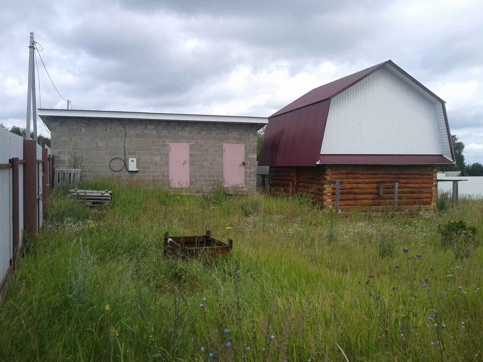 Цементоблоки размер 4,5×9 разделён, есть дровник 4,5×2. Полы бетонные, потолок деревянный высота 3м