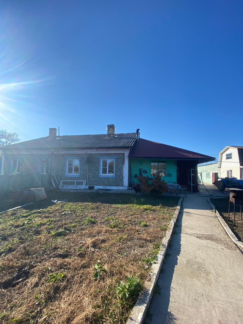 Дом находится на красной линии, рядом детский сад, школа, есть 2 магазина .
