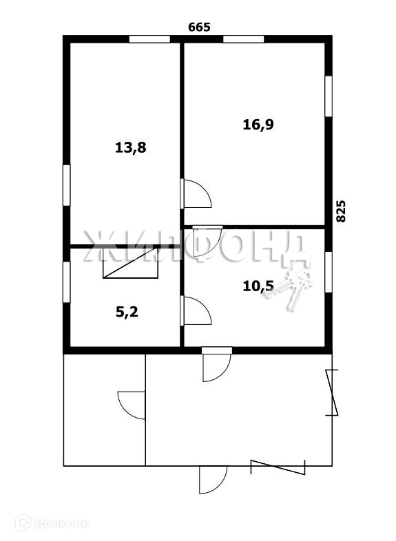 Жилая площадь 30.6 м2