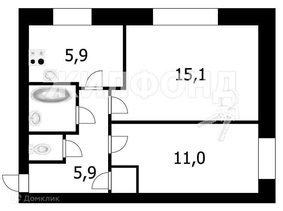 Общая площадь 41.9 м2