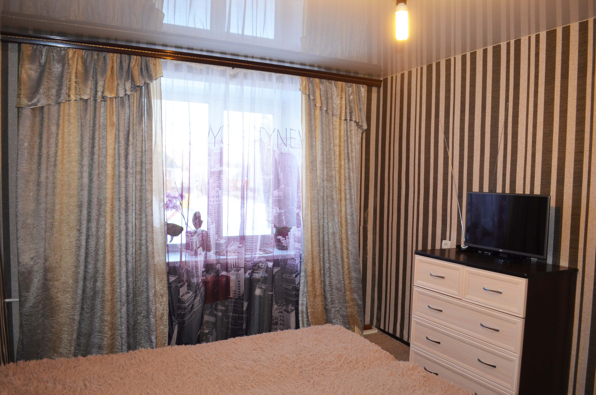 Квартира после капитального ремонта. Все окна пластиковые, стены выровнены, на полу ламинат, подвесные потолки. Ванна отделана кафелем, дорогая сантехника, душевая кабина с музыкой. В комнатах евроремонт в спокойных, универсальных тонах. Кухня изготовлена по индивидуальному заказу. Мебель и бытовая техника остаются в подарок!