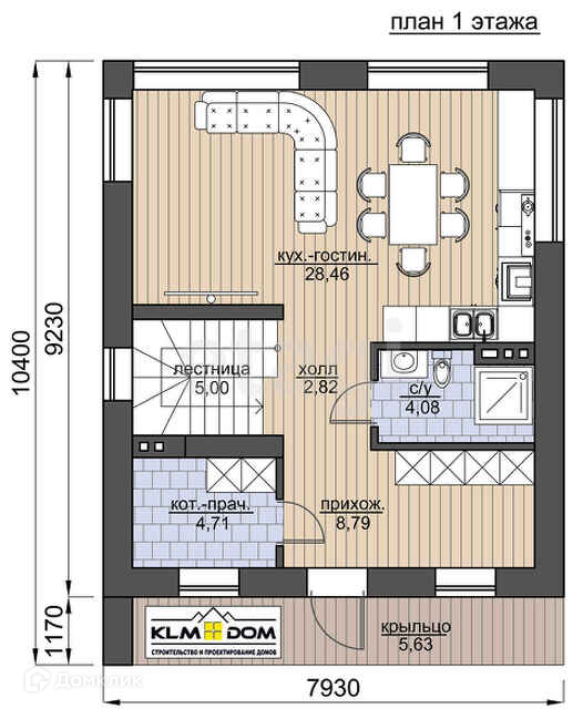 Компактный дом с традиционной скатной кровлей сочетает в себе элементы минимализма и лаконизма форм, но при этом не оставит никого равнодушным и будет хорошо выделятся на вашем участке.