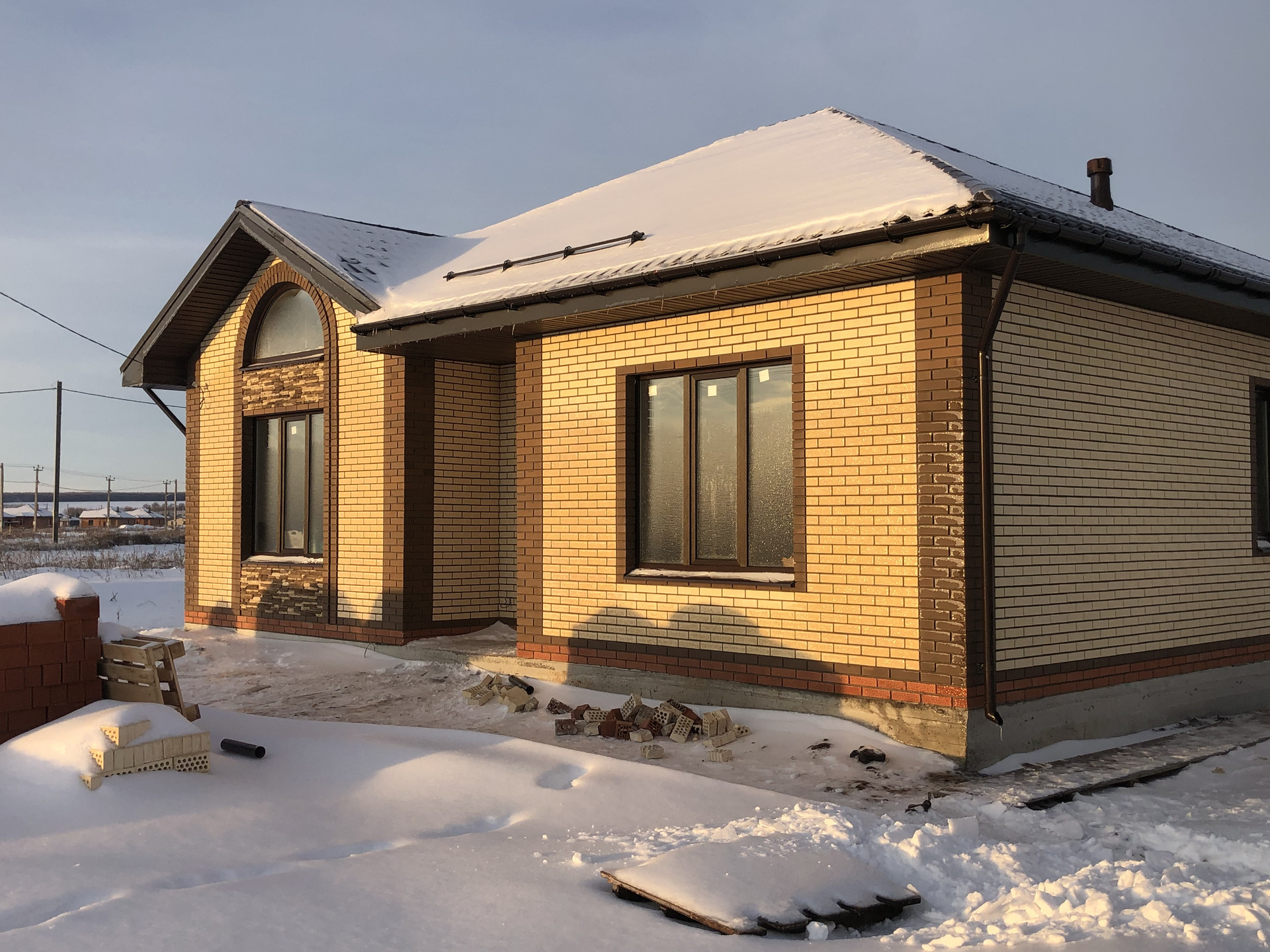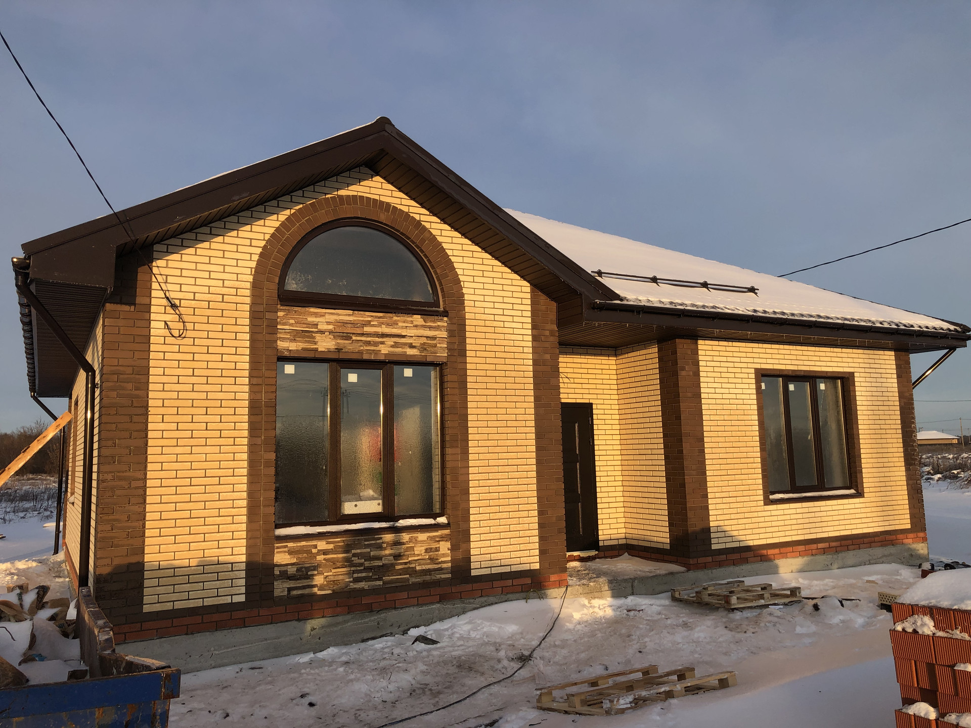 Стена: 50 см поротерм, утеплитель минвата технониколь 60 плотность 10 см, облицовочный кирпич 1нф «пшеничное лето»