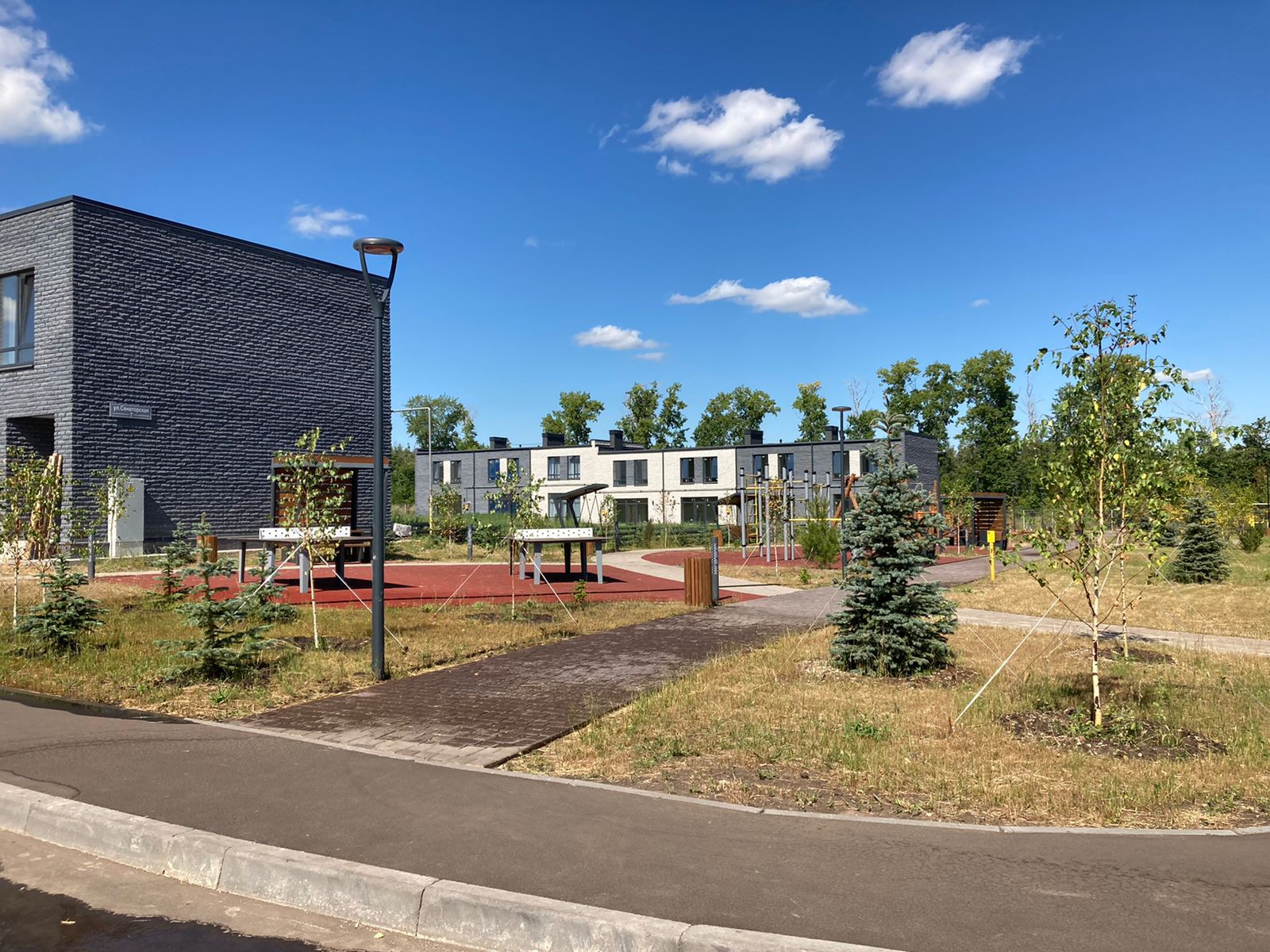 Закрытая территория таун-парка комфорт-класса "Sokurov" с собственными прогулочными зонами, детскими и спортивными площадками.