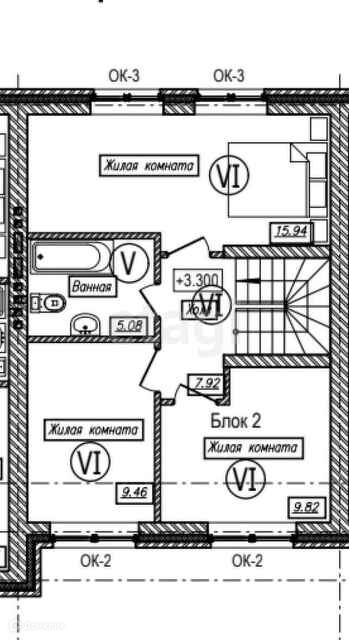 На втором этаже: сан узел, две большие спальные комнаты.