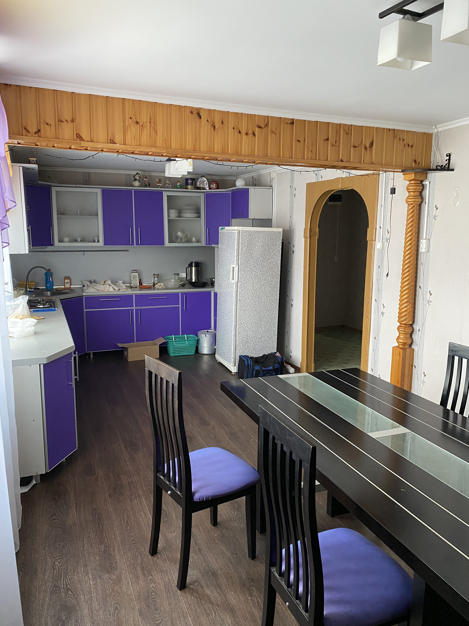 На первом этаже кухня- гостиная, комнаты (кабинет и  спальня), просторный санузел, большой холл. Полностью оборудованная кухня с техникой.