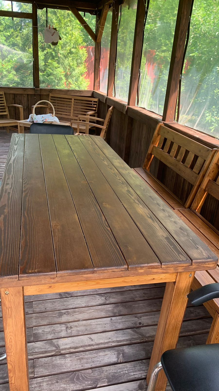Рядом с домом зона барбекю. Большая беседка, есть баня. Площадка под бассейн, теплица, места для хранения инвентаря и прочих вещей.
