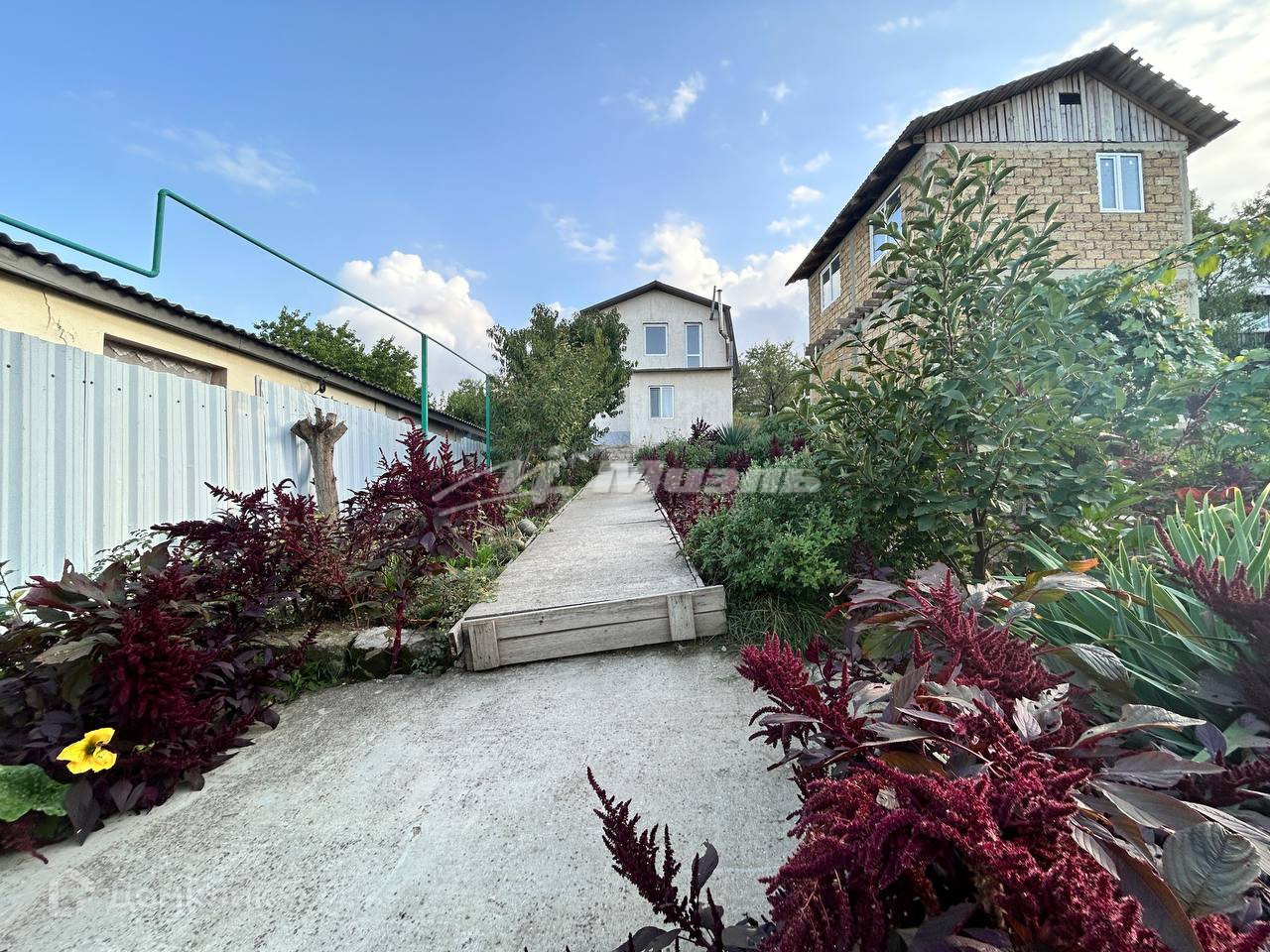На участке плодовые деревья, цветник.