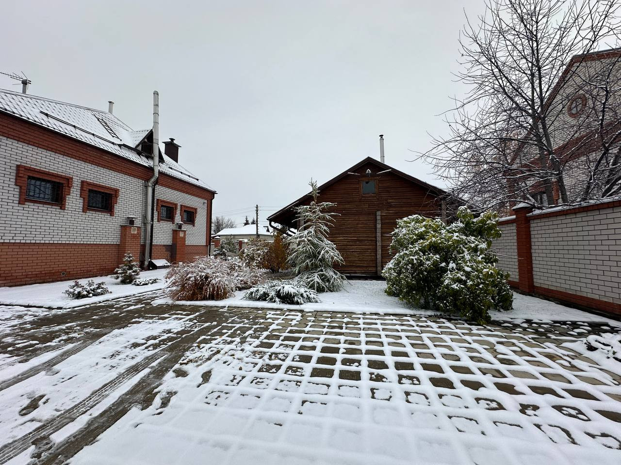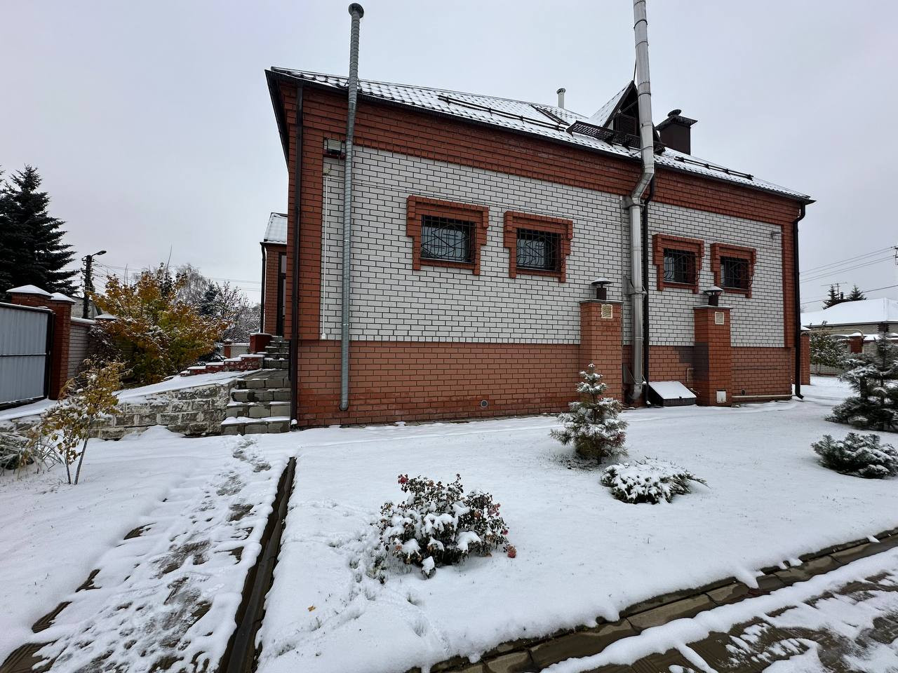 Дом оснащён всеми необходимыми удобствами: интернет, ТВ, и современными коммуникациями. Автоматические ворота открывают доступ к просторной парковке на 5 автомобилей (100 кв. м.). Дополнительный въезд с технической дороги делает доставку любых материалов удобной и быстрой.