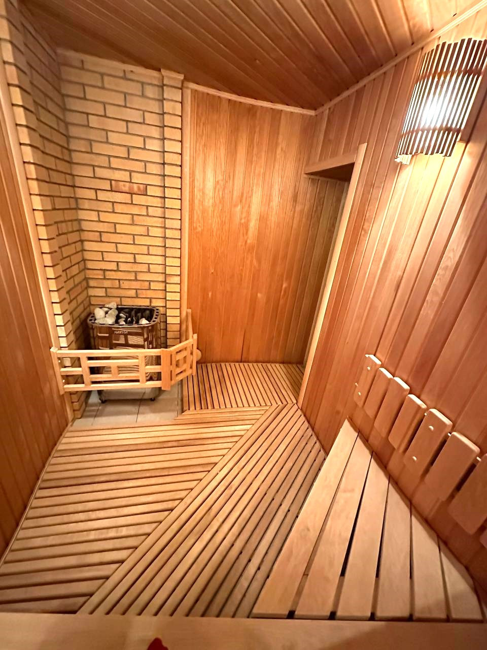 Отдельно стоящая, отапливаемая баня из кедрового бруса станет настоящим центром релаксации. В ней есть комната отдыха, парная, деревянная бочка, душ, санузел и уютная открытая терраса. Для вашего удобства предусмотрен просторный гараж с отоплением и автоматическими воротами. Теплица размером 4x6 метров и высотой 3 метра позволяет выращивать свежие овощи (перец, томаты, огурцы) прямо на участке. Также имеется дополнительный въезд с технического проезда, что облегчает доставку дров, земли и других материалов.