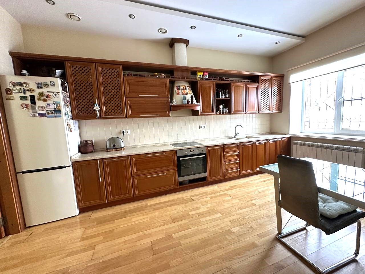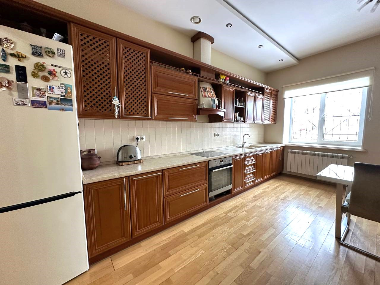Продается двухэтажный дом, расположенный в тихом и уединенном месте, в переулке без транзитного проезда. Дом идеально подходит для комфортного проживания большой семьи или семьи из двух поколений — всем будет уютно и удобно. На первом этаже находятся три просторные комнаты, холл, прихожая и кухня-столовая. В гостиной установлен действующий камин для тёплых вечеров и кондиционер для создания идеального микроклимата в любое время года.