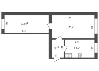 Продается 2-ком. квартира, 46.7 м2, Курортная улица, 12Б