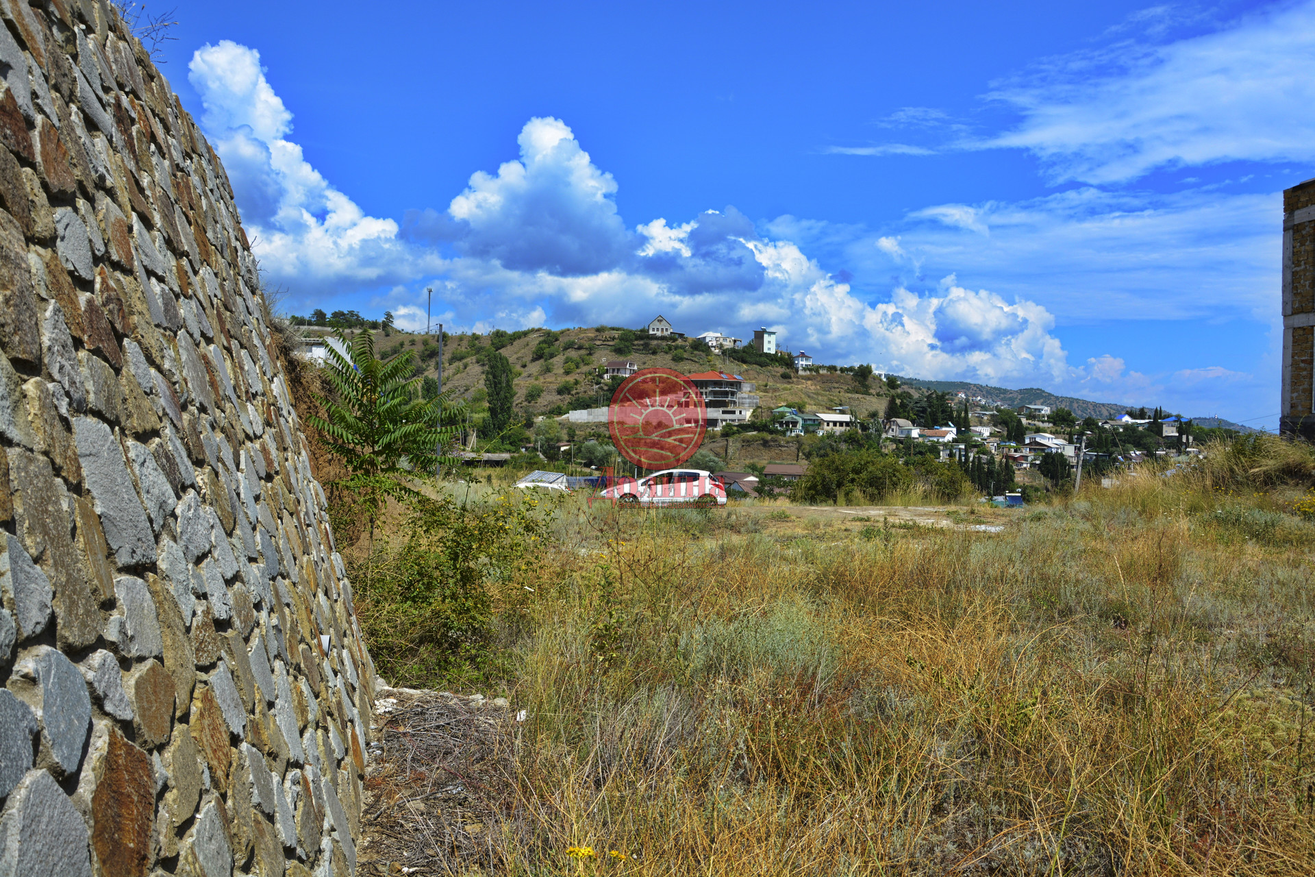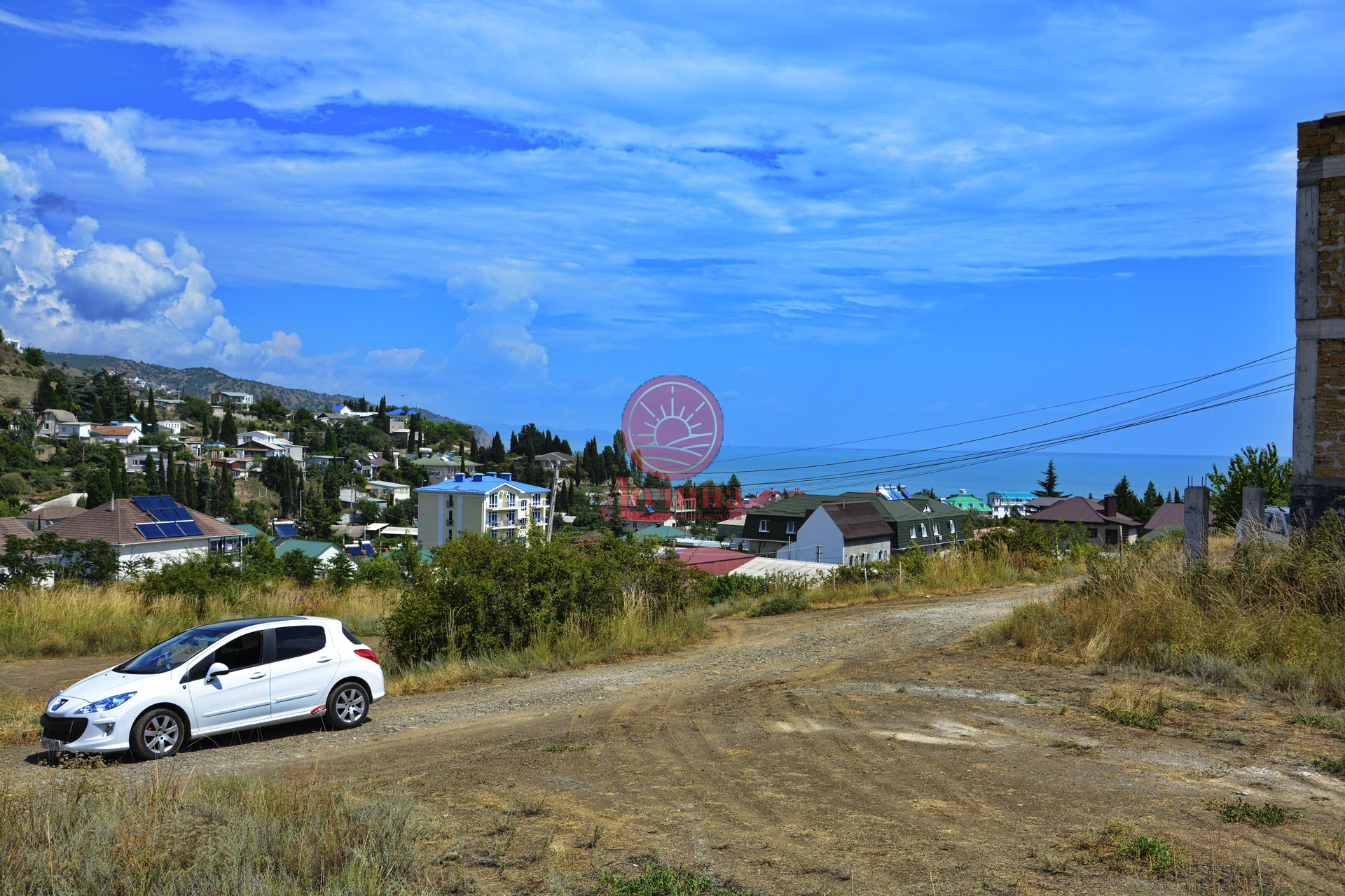 Участок находится в нижней части массива, откуда открывается вид на море и горы, не далеко от трассы Алушта-Судак, чистый морской, горный воздух.