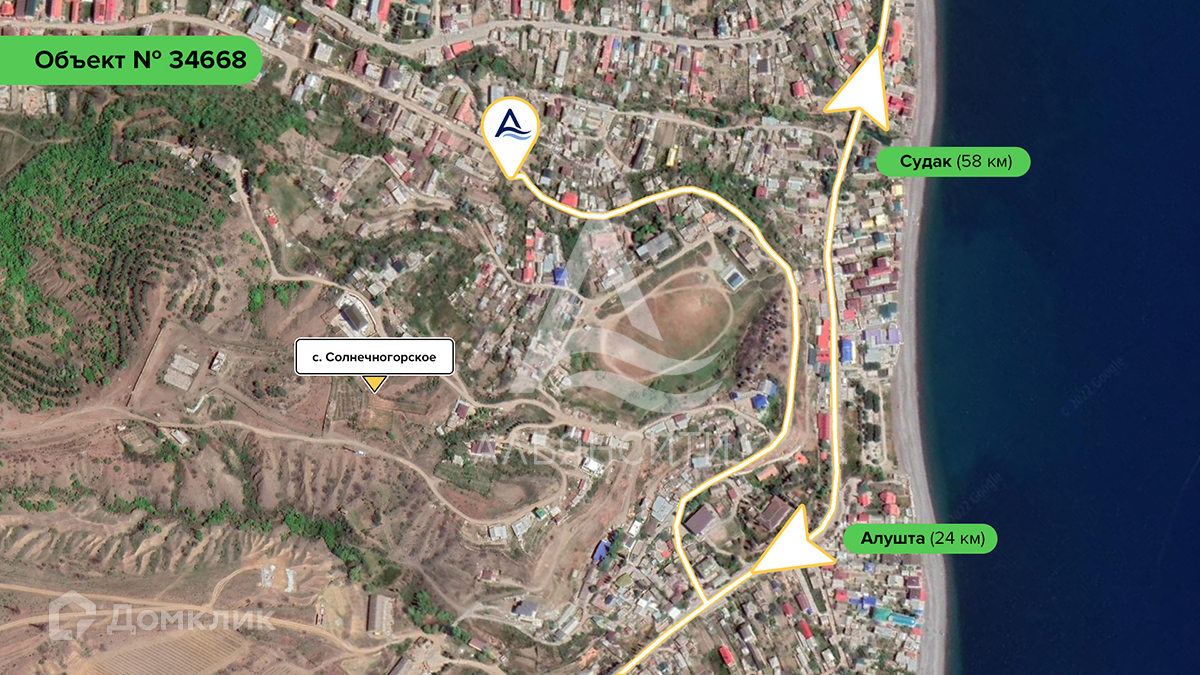 Локация: село Солнечногорское с развитой инфраструктурой — автостанция, фельдшерско- акушерский пункт, аптека, церковь, магазины, кафе, парк, детская площадка, стадион, дом культуры и творчества, продуктовый рынок, на прямую до моря 400 метров. Расстояние до города Алушта 23 км, до города Симферополя 72 км.