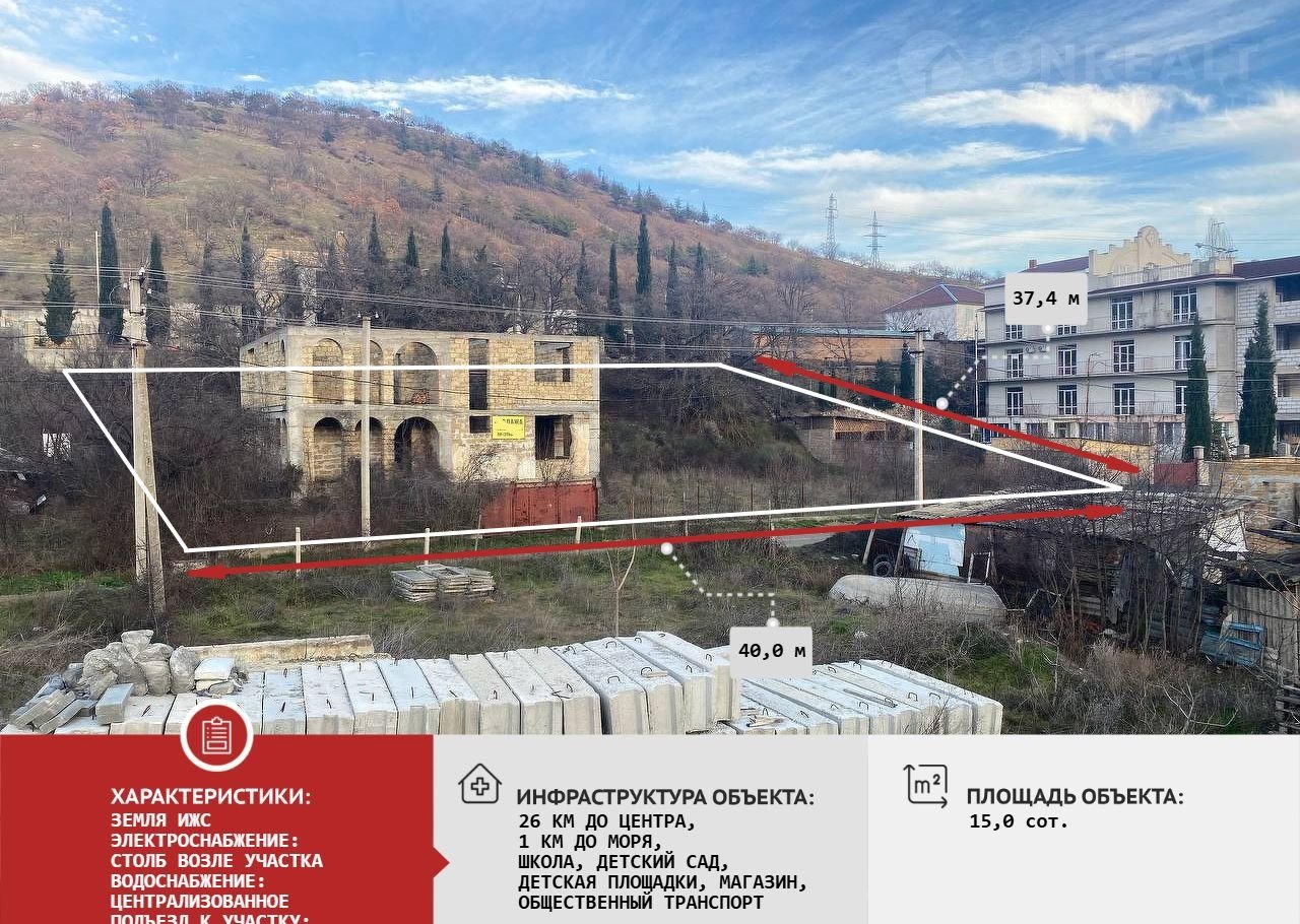 Инфраструктура:  магазины поликлиники отличная транспортная развязка горы, море (10 мин пешком) асфальтированная подъездная дорога наличие всех коммуникаций