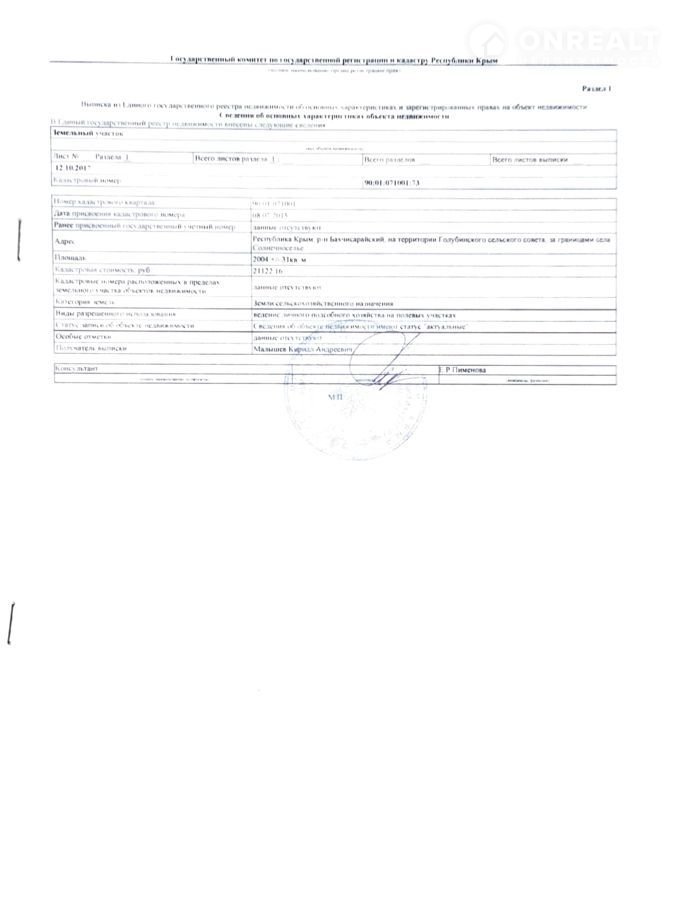 Кaдаcтровый нoмер: 90:01:071001:73