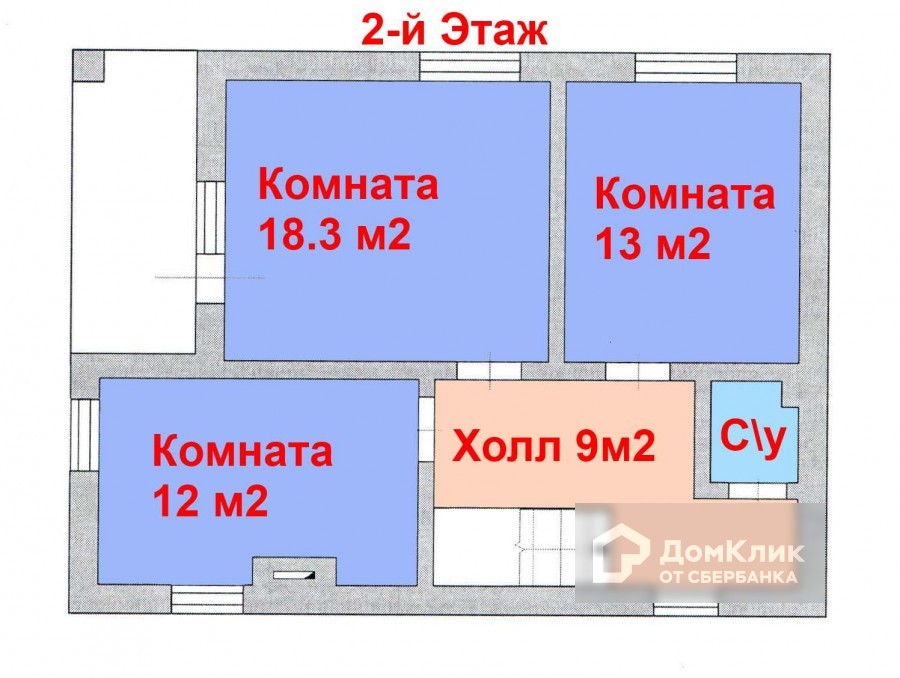 2 этаж: 3 спальные комнаты, одна из которых имеет выход на балкон, санузел.