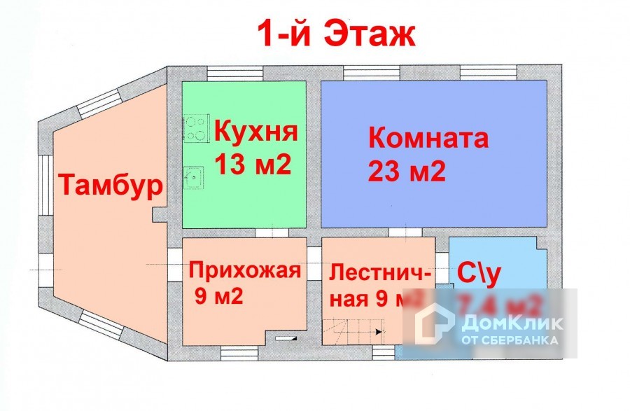 1 этаж: кухня, тамбур, зал, санузел, лестничная.