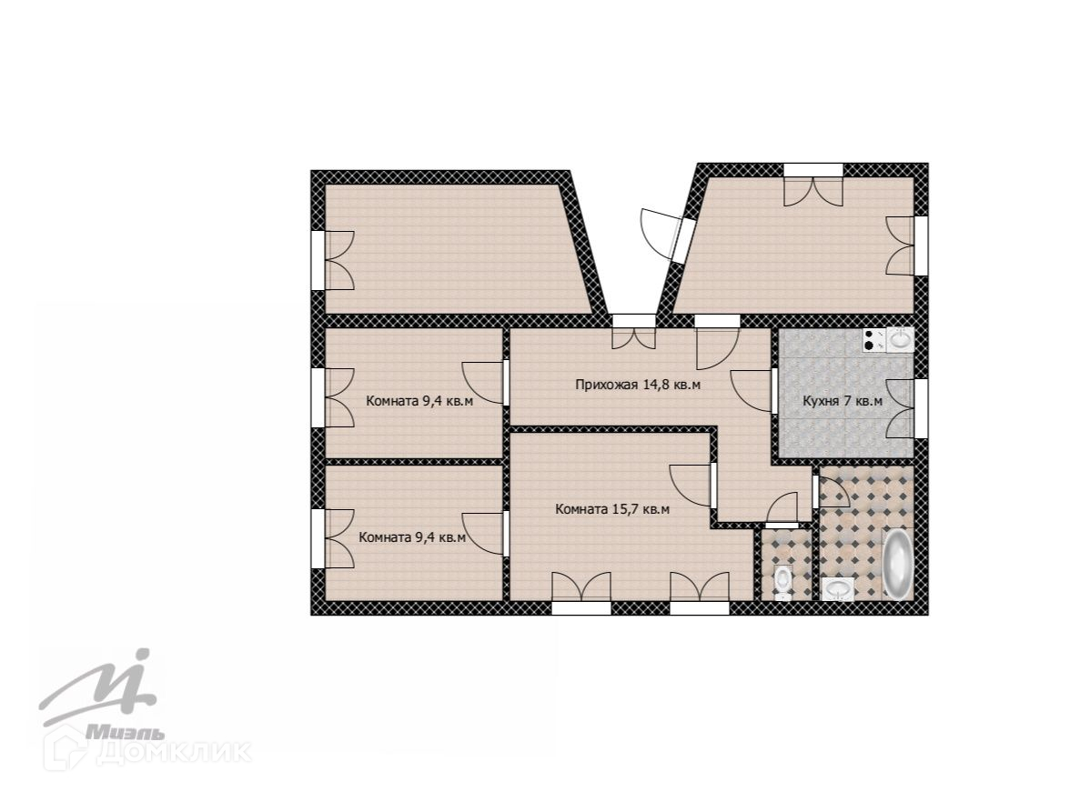 Общая площадь 61.9 м2