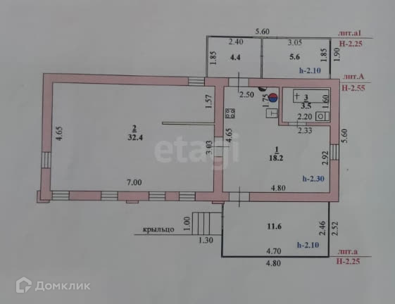 Просторная кухня 18,2 кв.м и одна большая комната 32,4 кв.м, которую можно разделить на две изолированных комнаты.