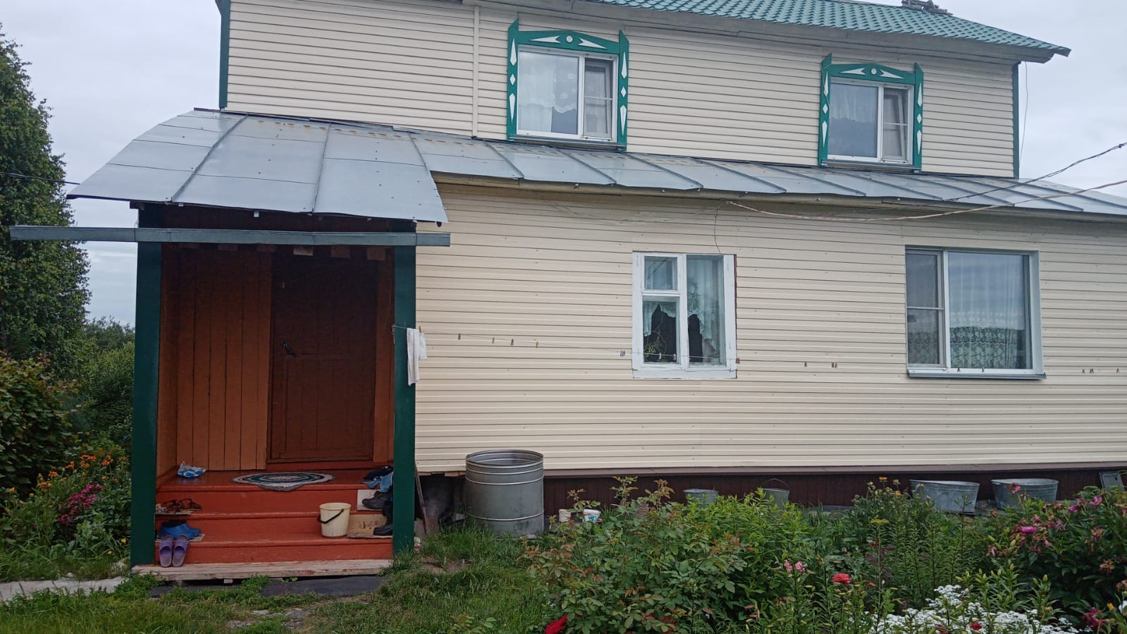 Продается 2-х этажный жилой дом. Стены обшиты металлосайдингом, пол утеплен, электроотопление и печь с водяной рубашкой, Центральная вода, канализация, баня, гараж, сарай, с/у в доме, есть место под душевую кабину, счетчики. Ухоженная придомовая территория. Частично остается мебель.