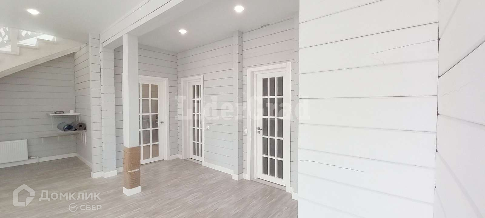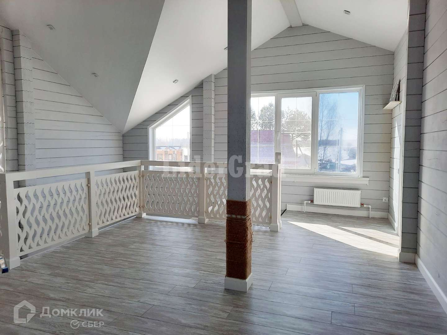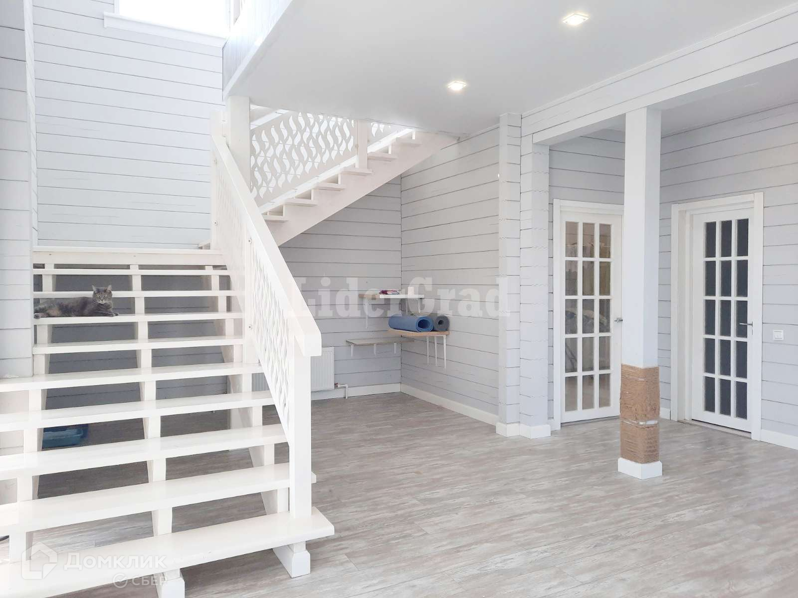 Все элементы декора перегородки, перила, двери выполнены из массива дерева ручной работы.