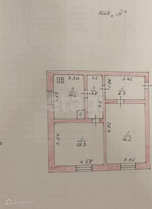 Общая площадь 52, 8 кв.м., две изолированные комнаты, просторный коридор, уютная кухня, совместный санузел.