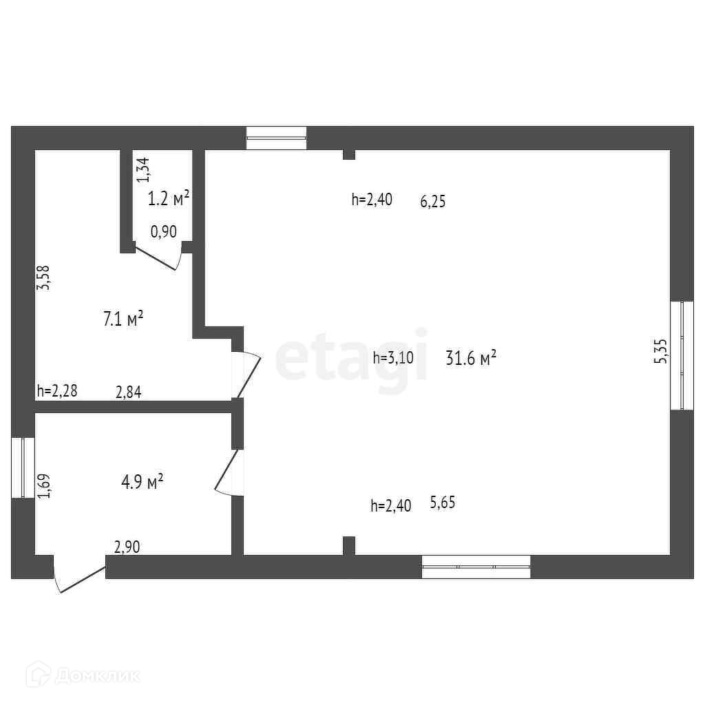Общая площадь 48.7 м2