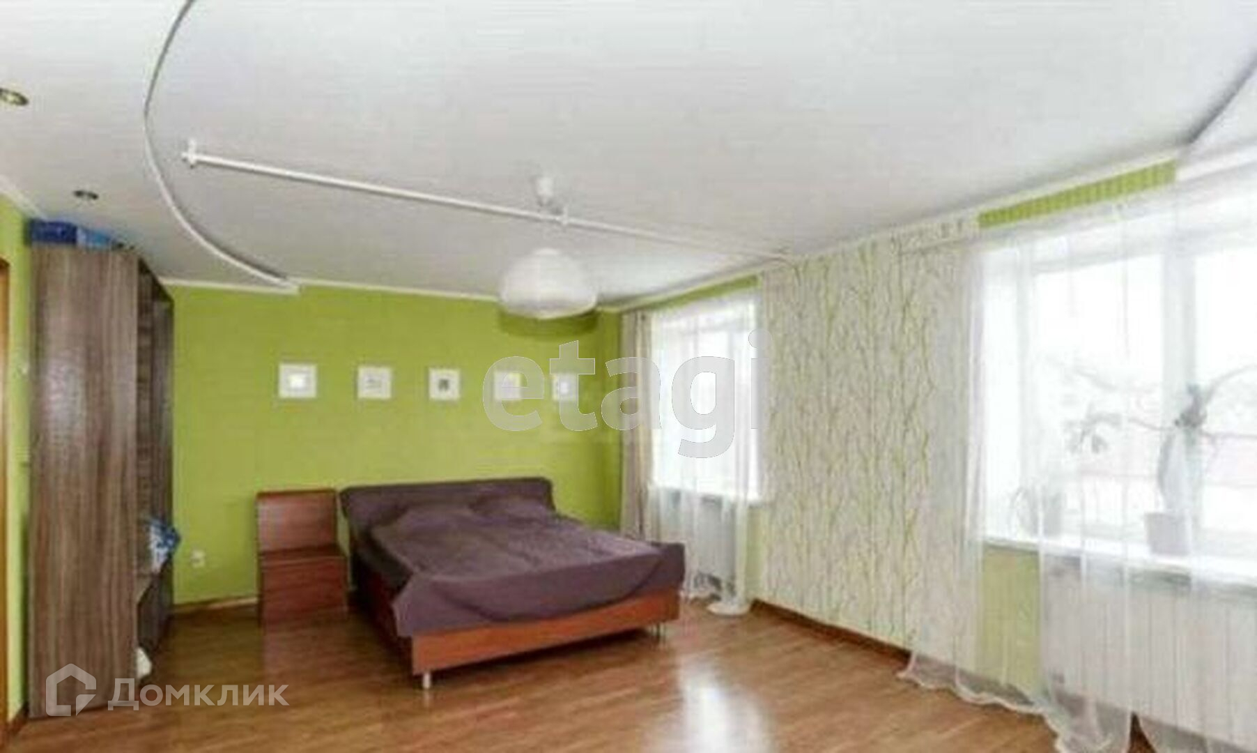 Кухня совмещена с большой зоной отдыха, на полу везде ламинат.