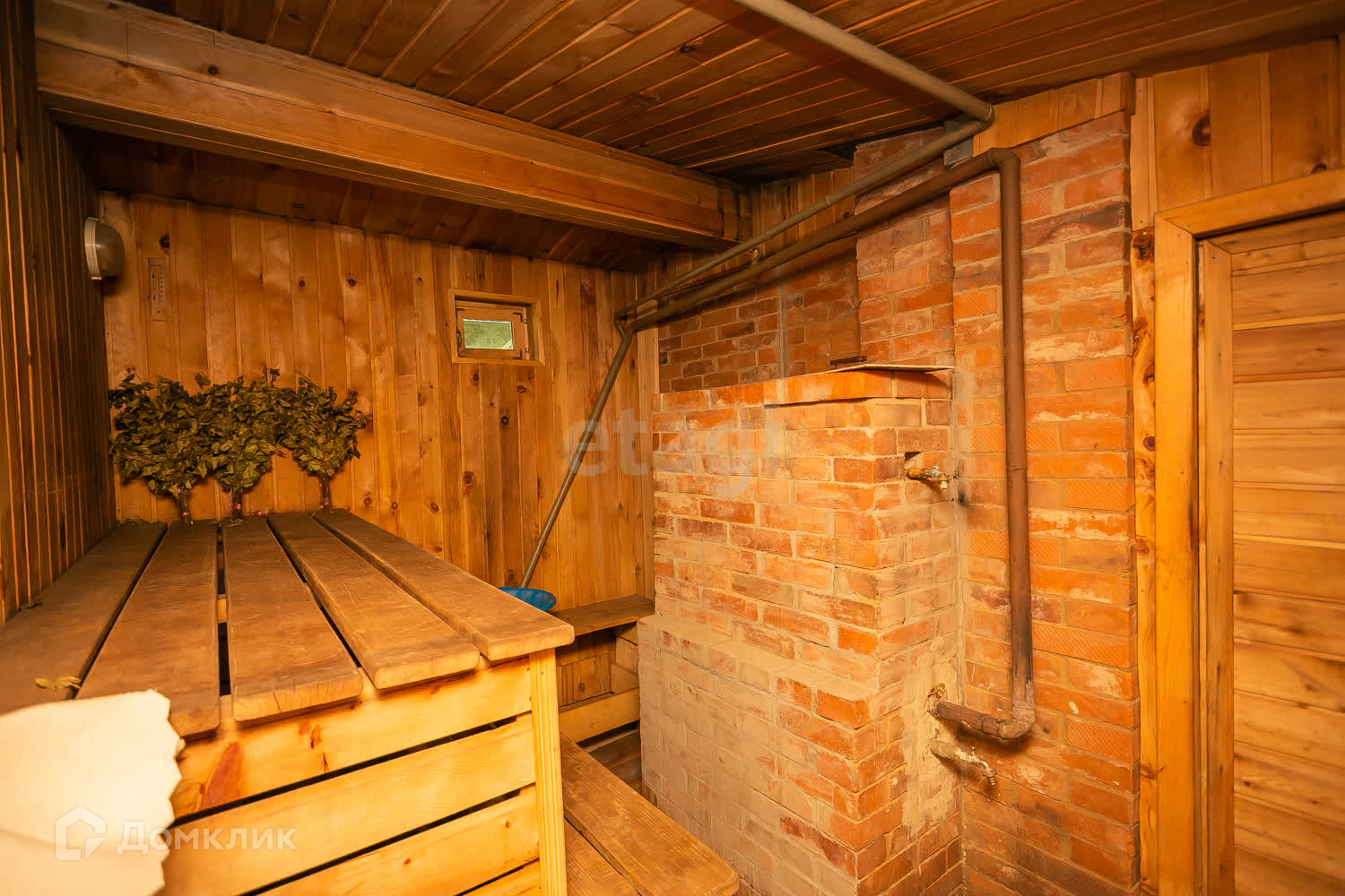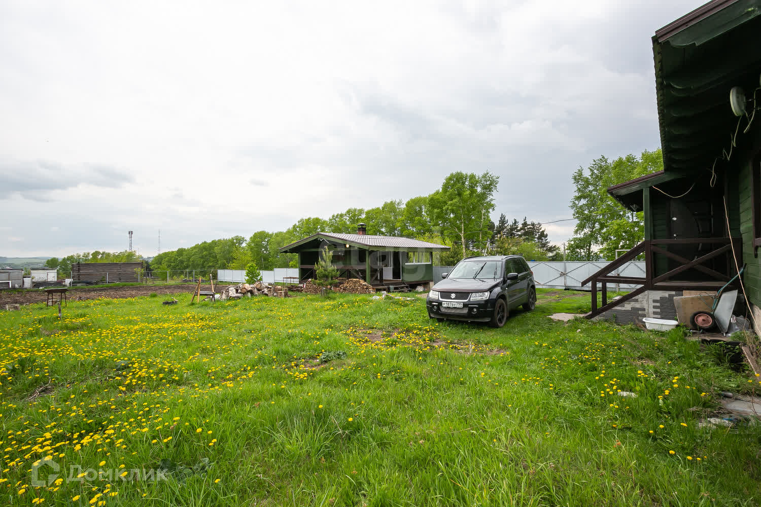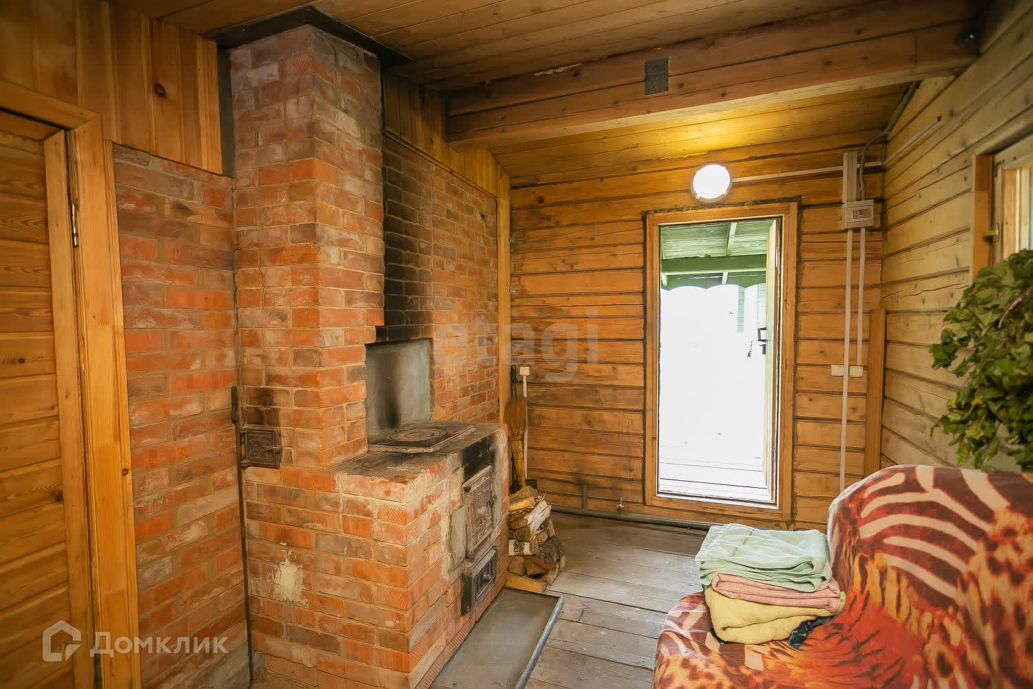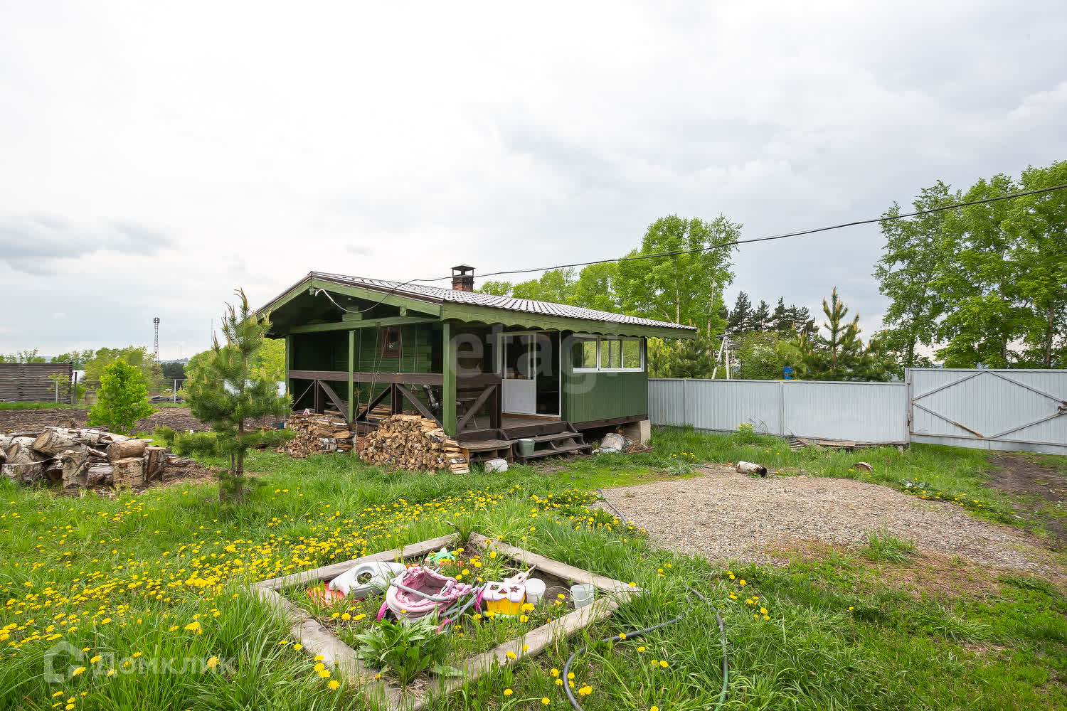На территории расположена баня 20 кв. м из пихтового бруса. Внутри отделка кедром.