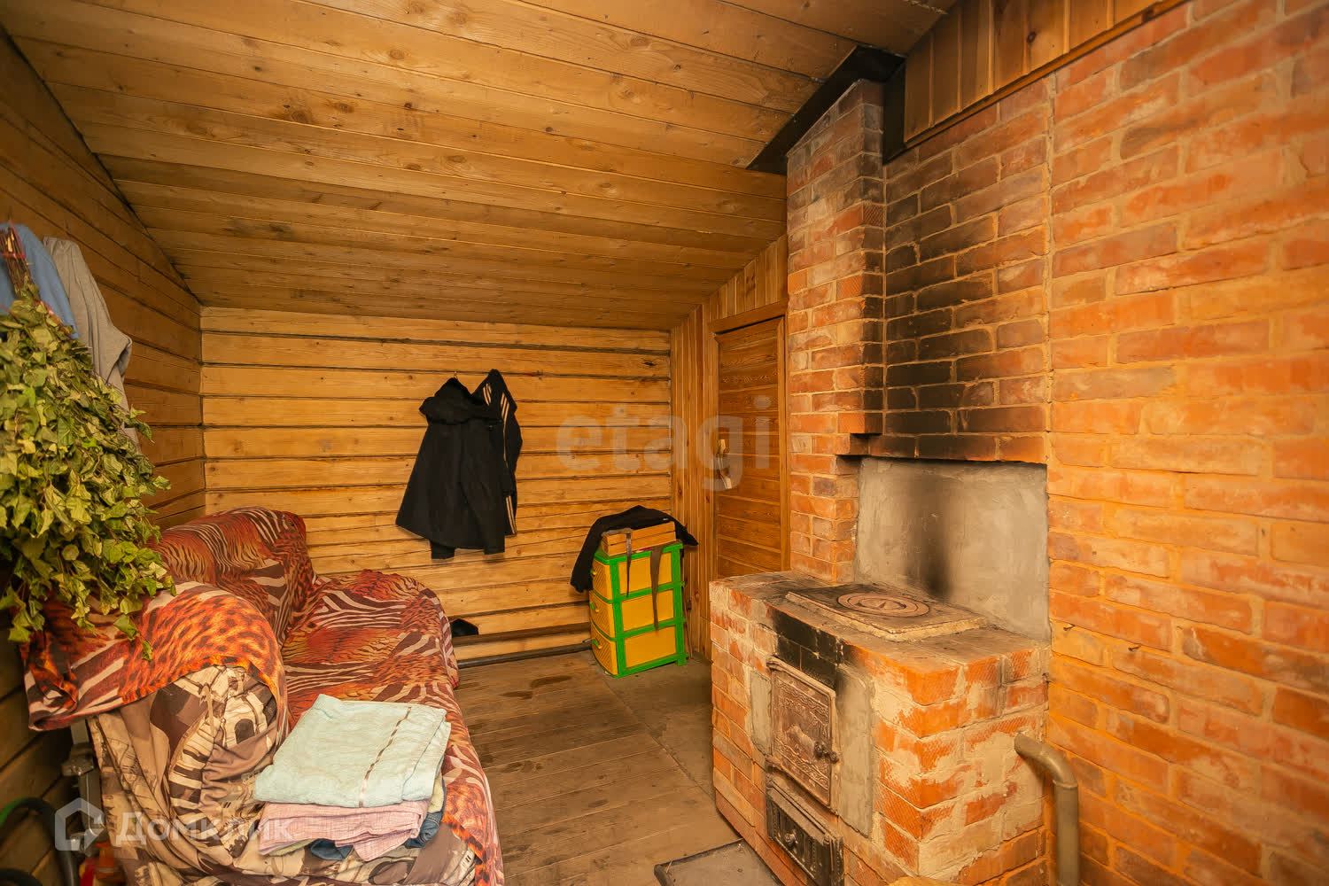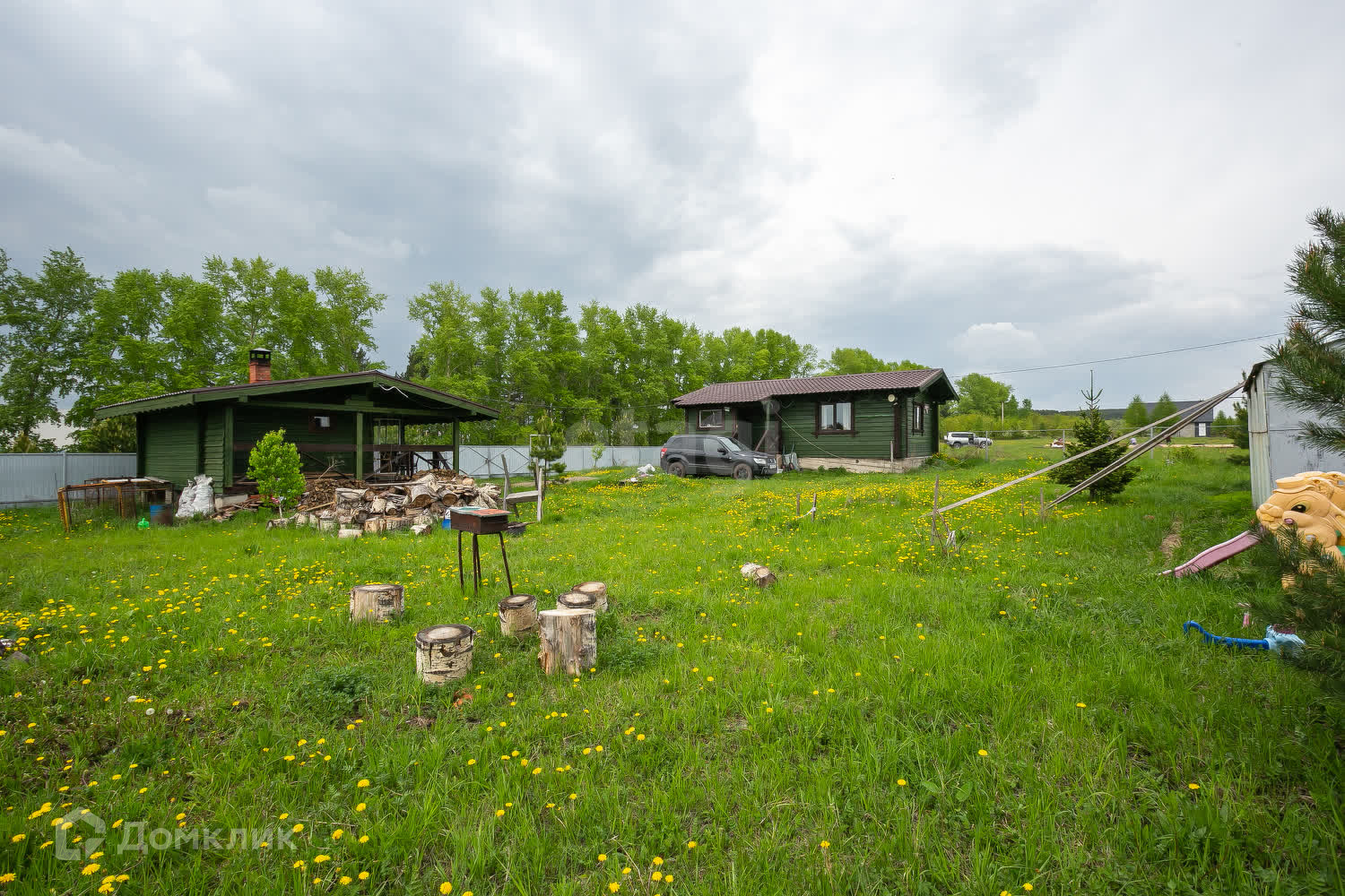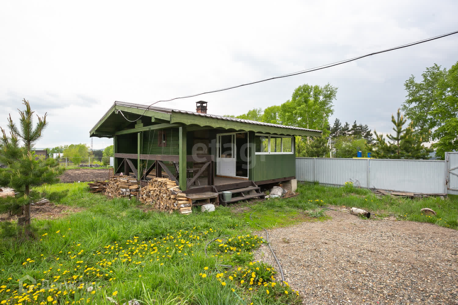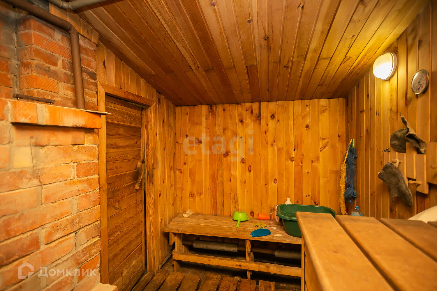 На территории расположена баня 20 кв. м из пихтового бруса. Внутри отделка кедром.