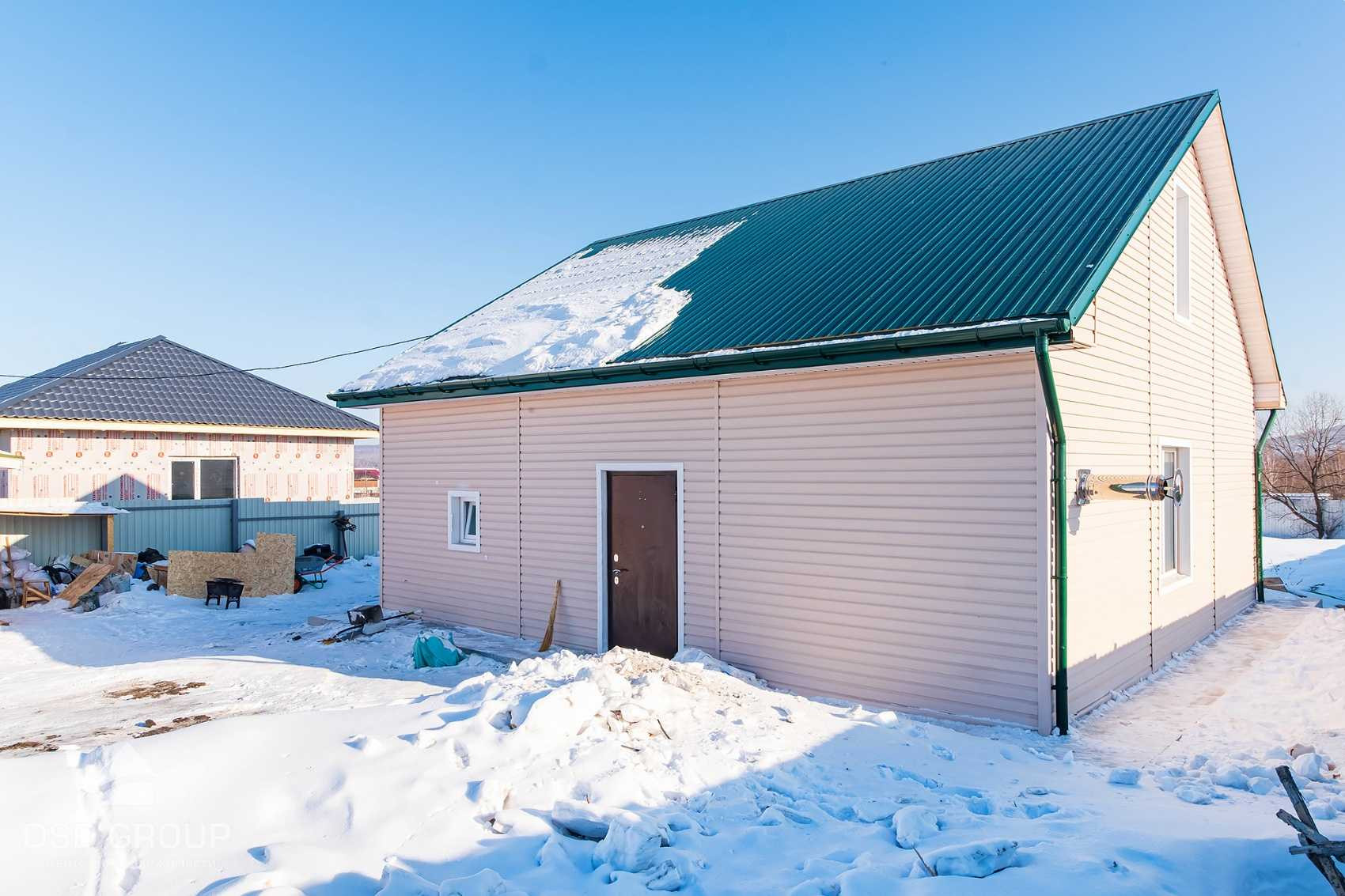 Крыша подготовлена к обшивки второго этажа, установлена дверь, окно, лестница, отдельный вход на второй этаж, проводка заведена.