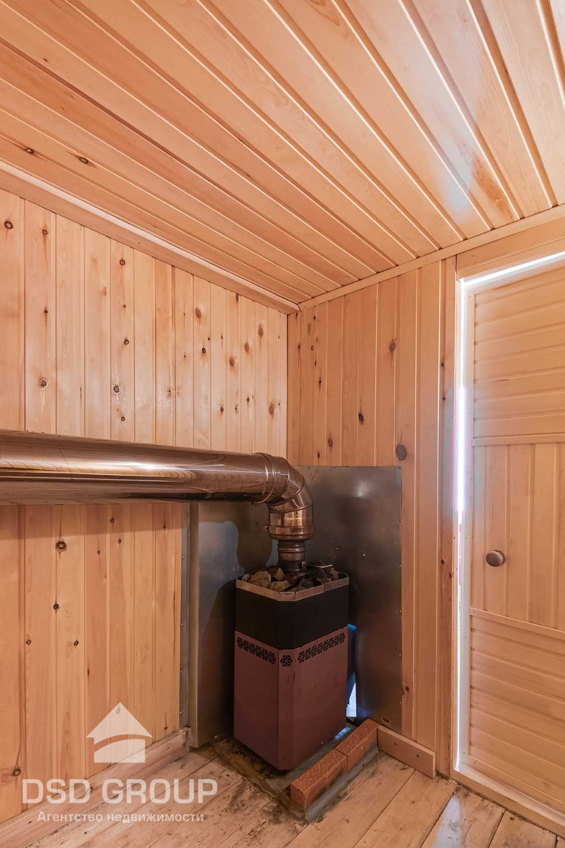 Баня очень тёплая, современная, с душевой кабиной, накопителем воды, бойлером, насосной станцией и инфракрасным обогревателем. Зимой температура в парной 100 градусов за час топки примерно, держит долго, печь новая с камнями, труба сэндвич безопасная. В бане тоже все остаётся.