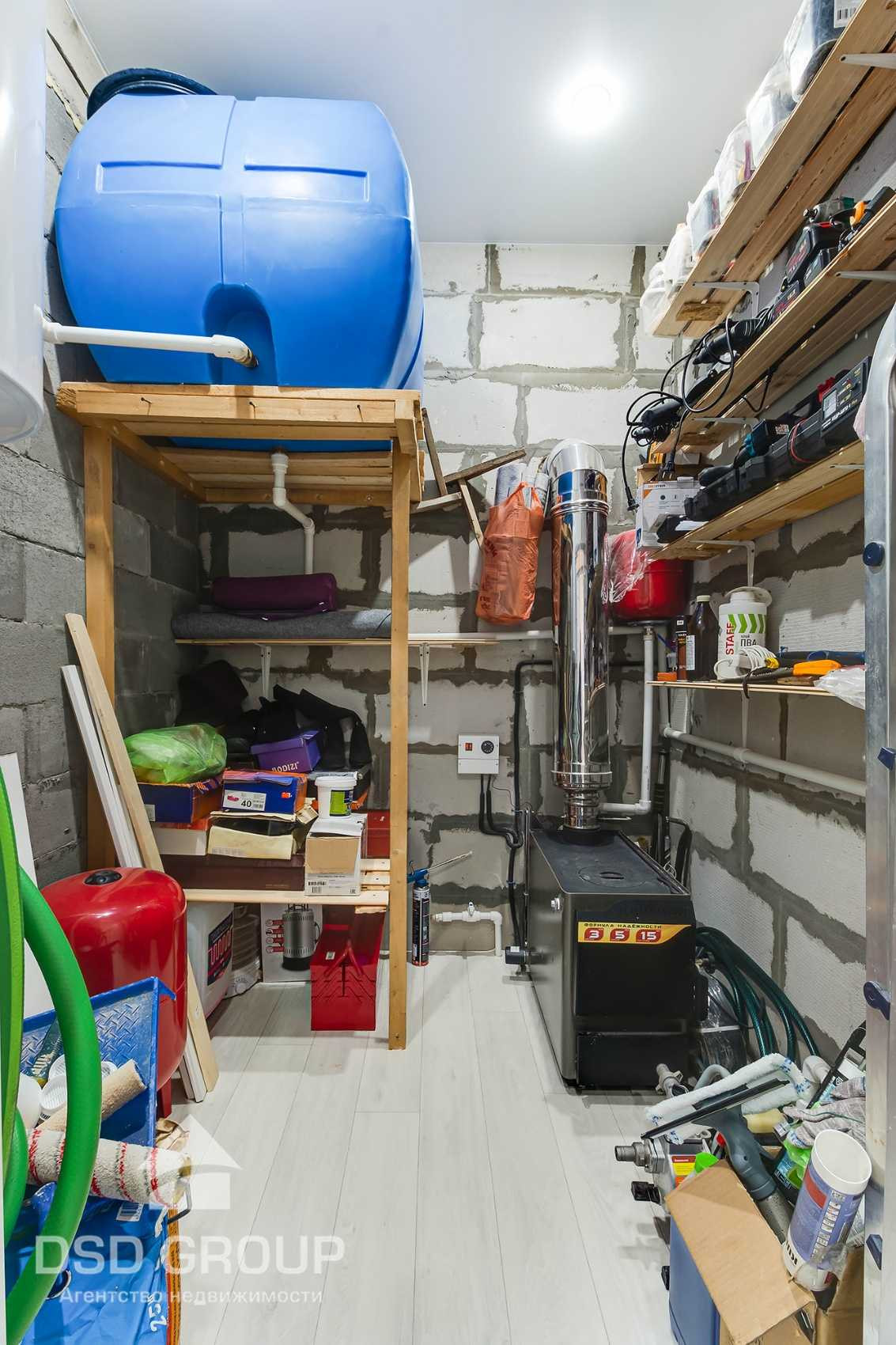В котельной установлен бойлер на 100 литров, накопитель холодной воды на тонну (даже если не будет света, то вода будет, идёт под собственным напором), насосная станция (берёт воду с накопителя), а в накопитель поступает со скважины, котёл совмещённый, мощность электротенов 6квт , мощность на дровах 12 кВт, всю зиму пользовались только электро, дровами очень жарко дома, установлен терморегулятор отопления, отопление полноценное, с трубами и жидкостью внутри (а не конвекторы), радиаторы алюминиевые. Котёл может работать также автономно без электроэнергии. То есть дом сделан так, что всегда будет вода и тепло, не смотря на внешние факторы.