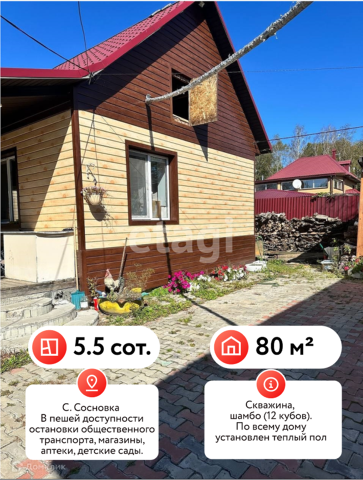 Доп. описание: отопление: электрическое, канализация: септик Номер в базе: 11487786. Район: Сосновка с.