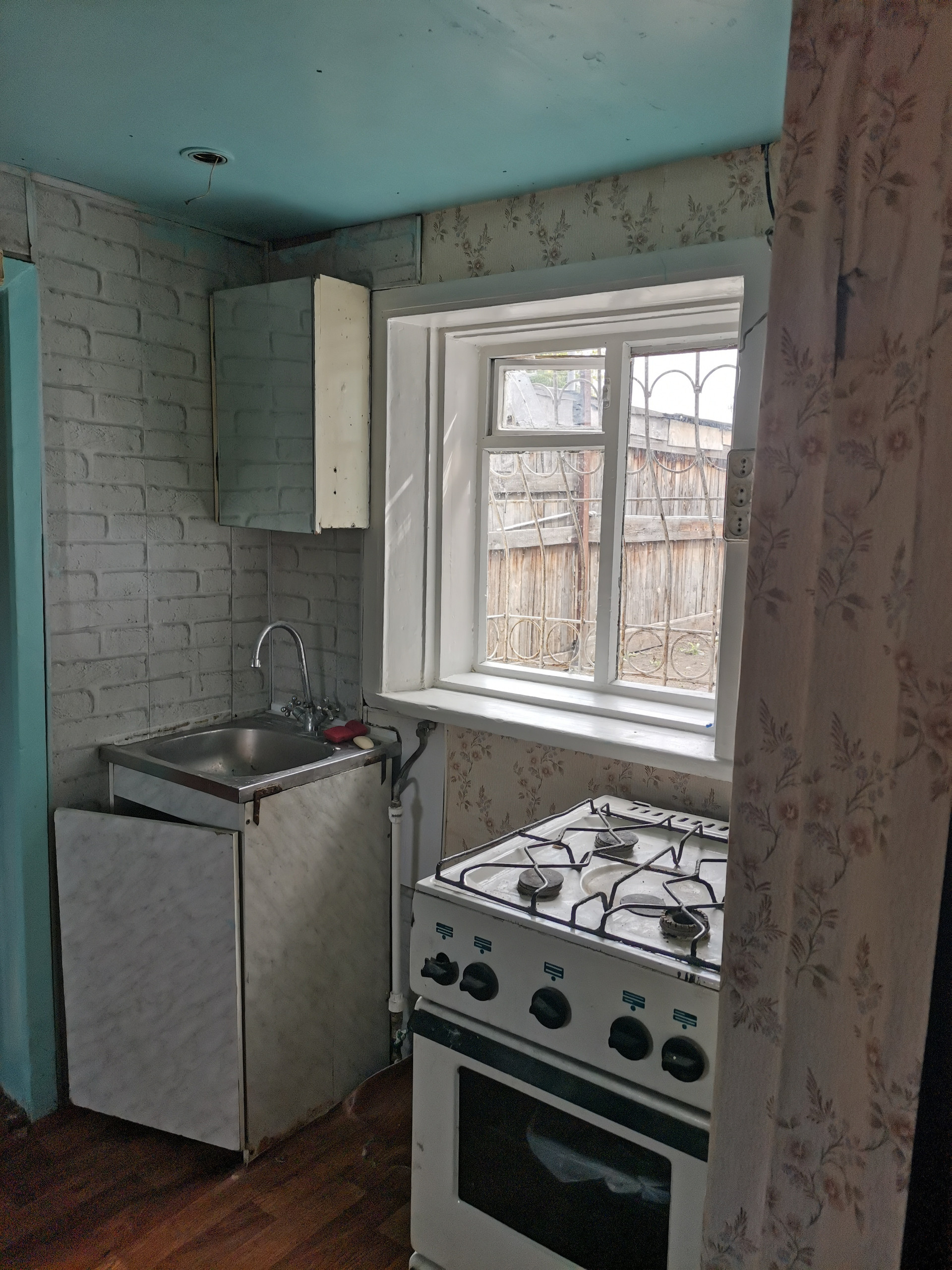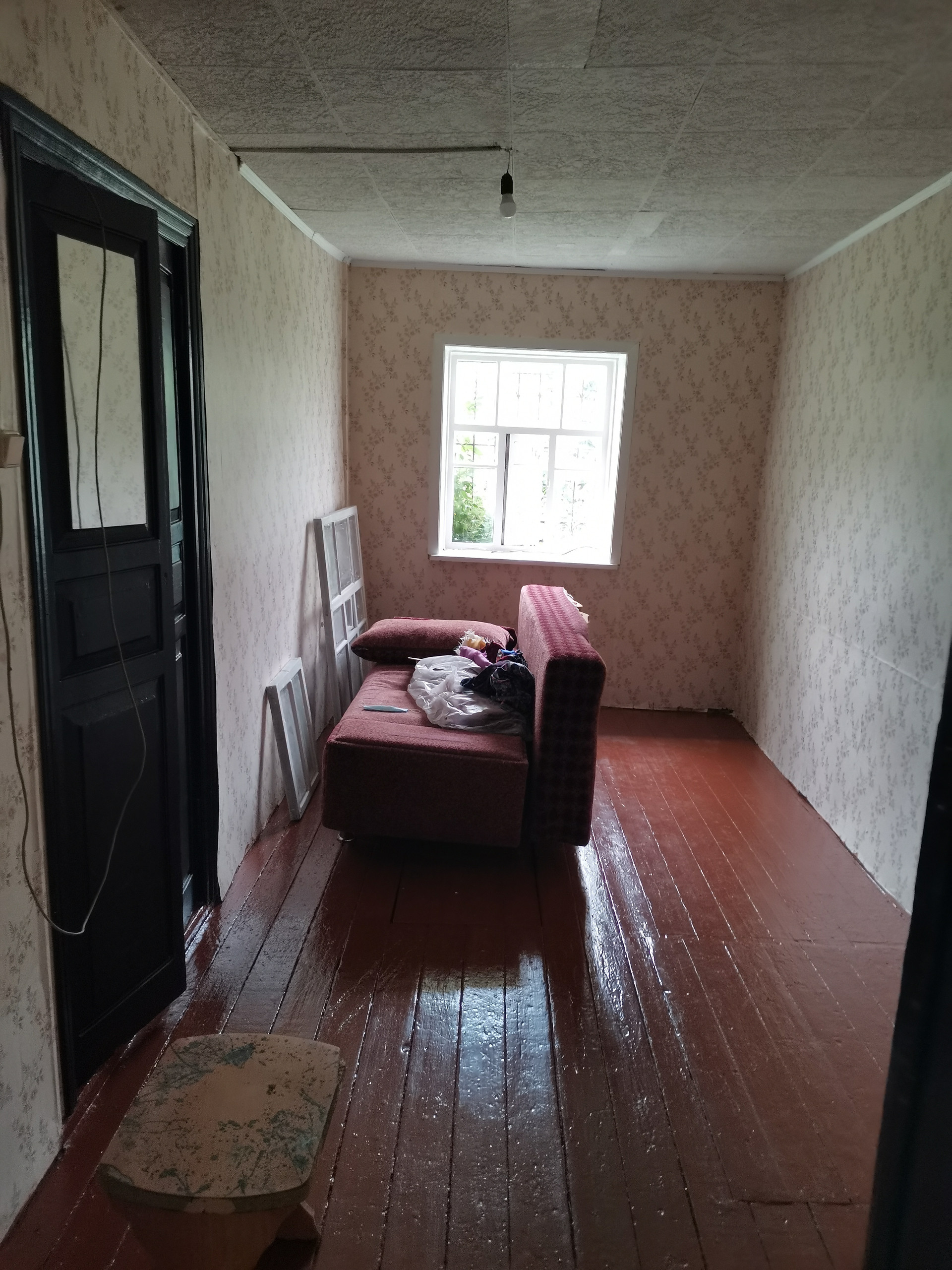 Домик кирпичный, добротный, есть возможность пристроить кухню. Есть летняя кухня, отдельно стоящая и банька. В дом заедена вода и есть канализация местная. Окна деревянные, полы деревянные. Отопление водяное, печь.