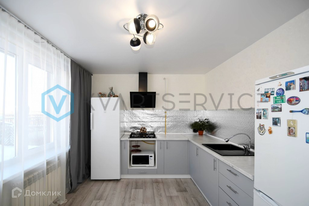 Встроенный кухонный гарнитур, вытяжка, газовая варочная поверхность, шкафы-купе.