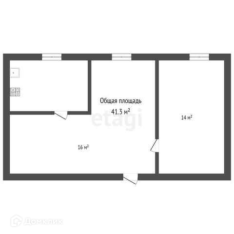 Общая площадь 41.3 м2