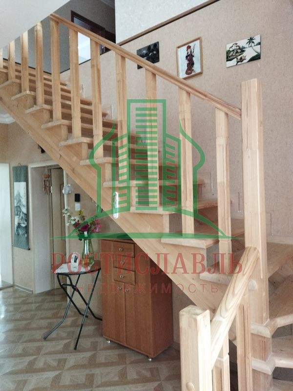 Удобная лестница на 2-й этаж: холл 26 кв.м, три спальни 26,6 кв.м, 17,1 кв.м и 13,5 кв.м. Есть "темная" комната - чулан, можно использовать как гардеробную, санузел с джакузи 6 кв.м. И изюминка - зимняя застекленная веранда 18 кв.м с шикарным видом на окрестности на южной стороне дома.