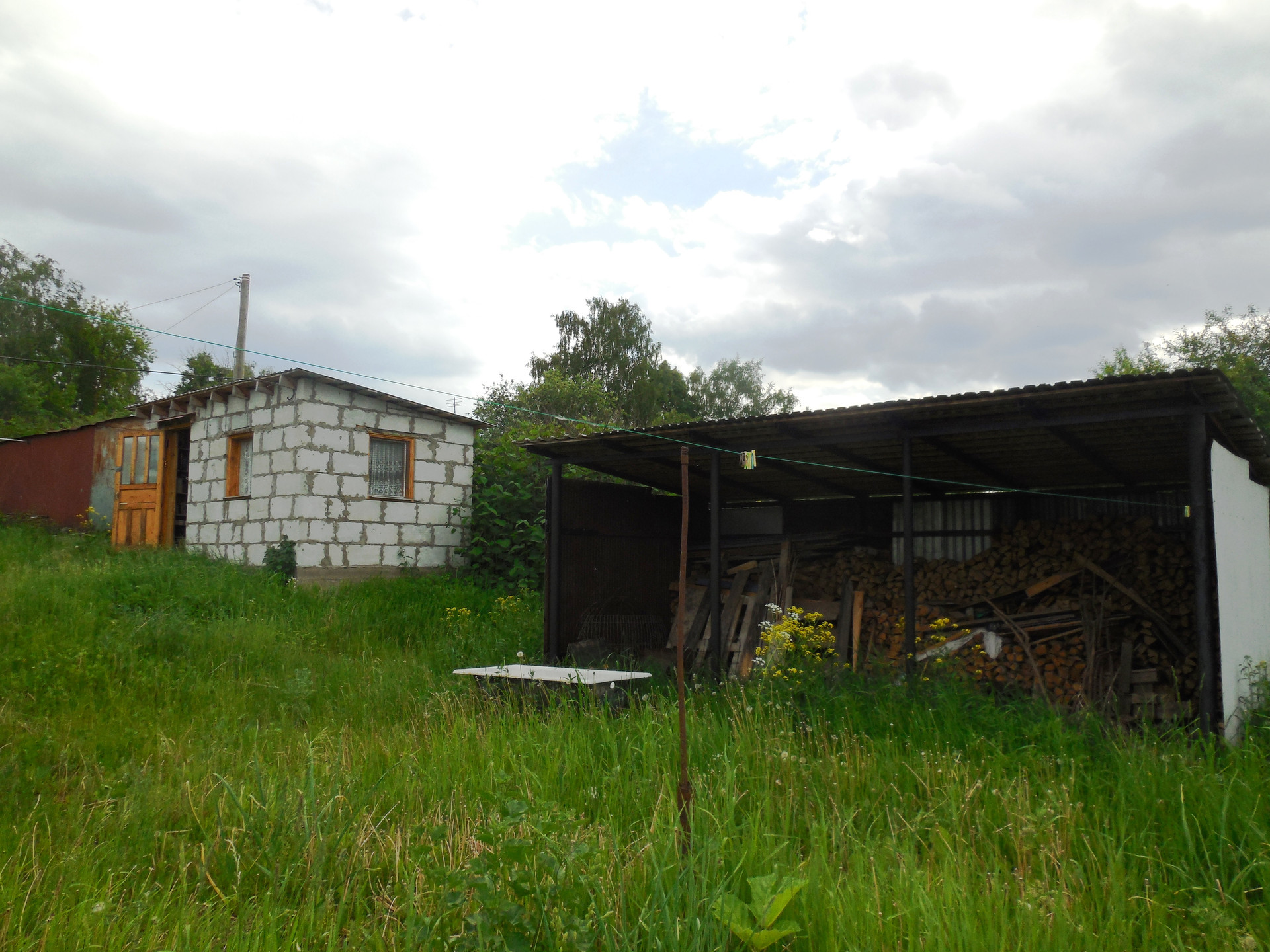 Участок – 17 соток, для ведения личного подсобного хозяйства (с правом прописки), огорожен, есть ворота для авто. На участке - кроме дома-бани - два отдельных блочных гостевых дома (20 и 15 кв.м), гараж-сарай, большая дровница под навесом, уборная, фундамент от старого дома. Есть зона барбекю, для посиделок стол и лавочки.