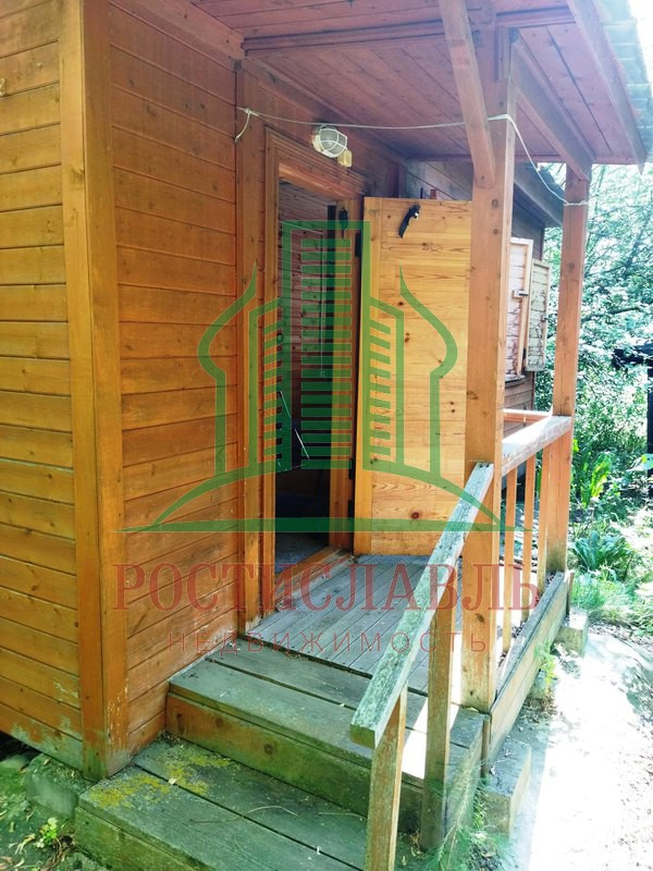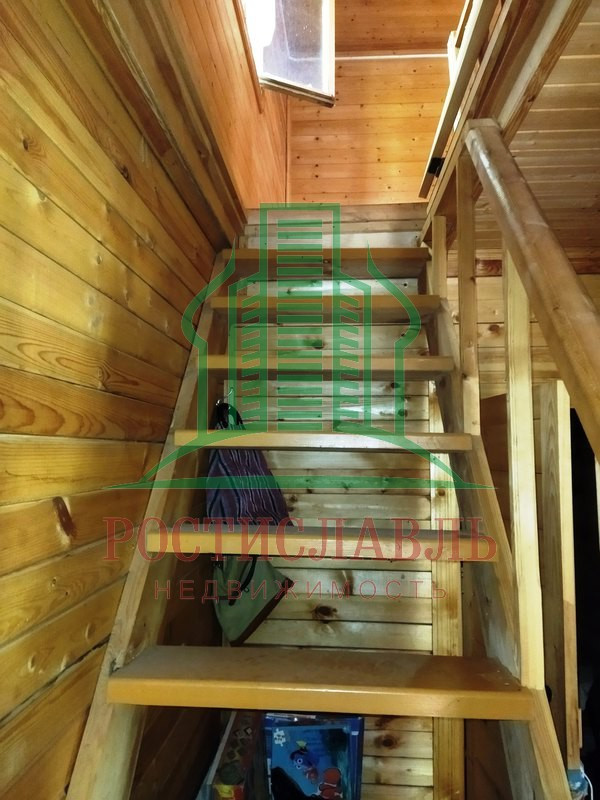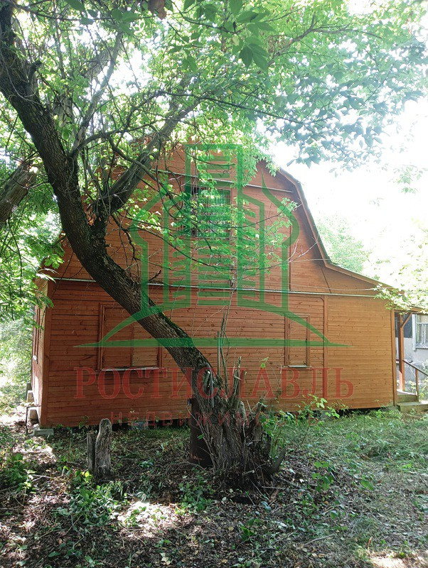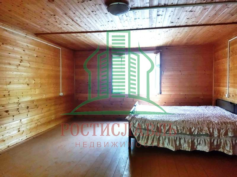 Почти новый деревянный дом 6 х 8, брусовый, с мансардой, всего 68 кв.м - комната-терраса, коридор с лестницей, кухонька 5 кв.м, две комнаты 14 и 11 кв.м и одно помещение на мансарде. Фундамент - опорные блоки. Окна, полы и двери - деревянные. Крыльцо. Крыша железная. Без отопления. Вода была от летнего водопровода.