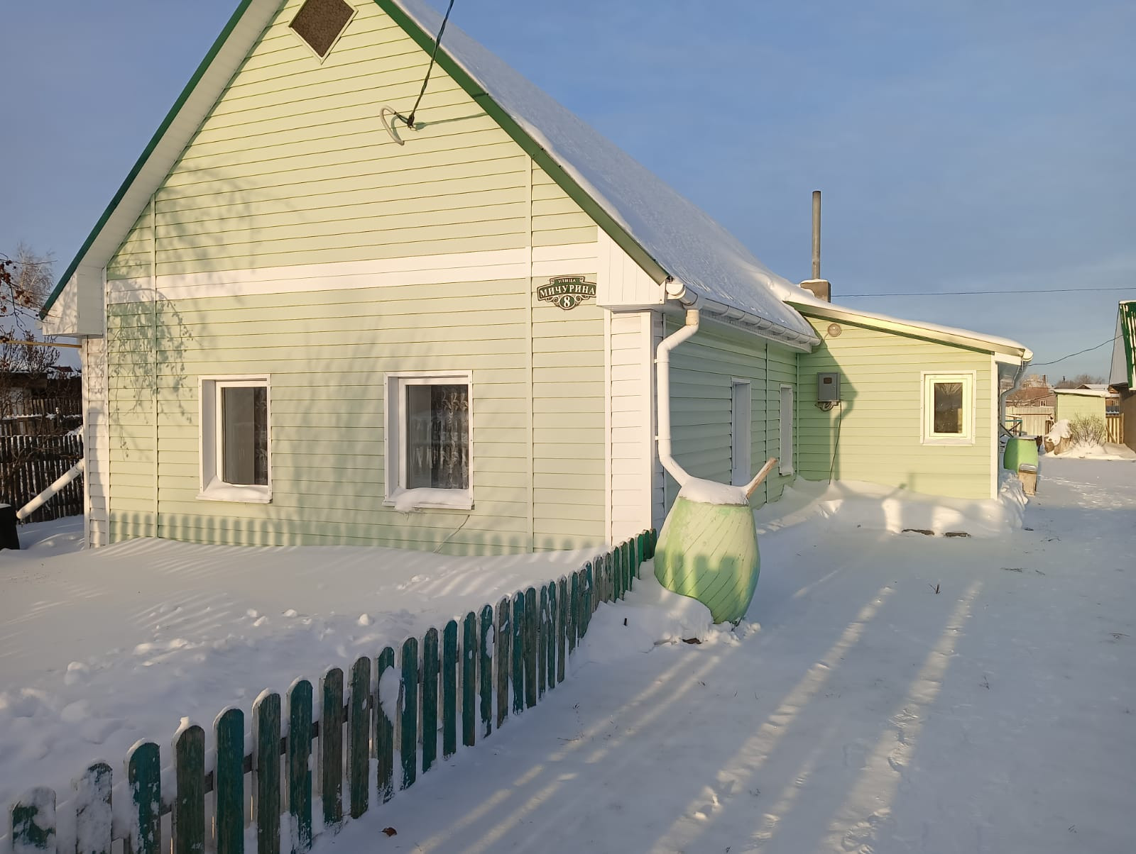 Имеются все необходимые посадки: яблони 4 вида, крыжовник, смородина красная и чёрная, малина, ирга, жимолость. На участке есть баня, сарай , гараж, дровник,теплица, подвал, 2 выгребные ямы ( баня, дом).Перед домом имеется освещение.