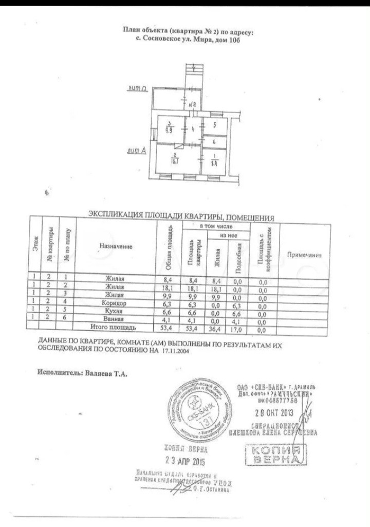 Общая площадь 53.4 м2
