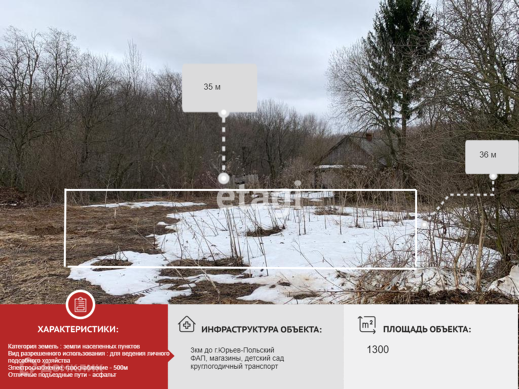 От города Юрьев-Польский — 3км. Село окружено красивыми пейзажами природы, грибные и ягодные места, а самое главное — чистейший воздух !!! Отличный вариант для постройки жилого дома Вашей мечты, для отдыха вдали от городской суеты.