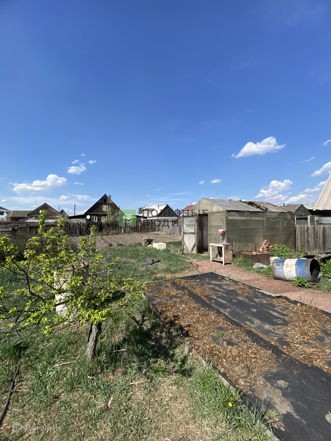 На 11 сотках земли растут облепиха, смородина, малина, вишня, жимолость, крыжовник и слива, которые дают обильные урожаи. Недавно высадили картофель. Теплица, баня, дрова, вальер для собаки.
