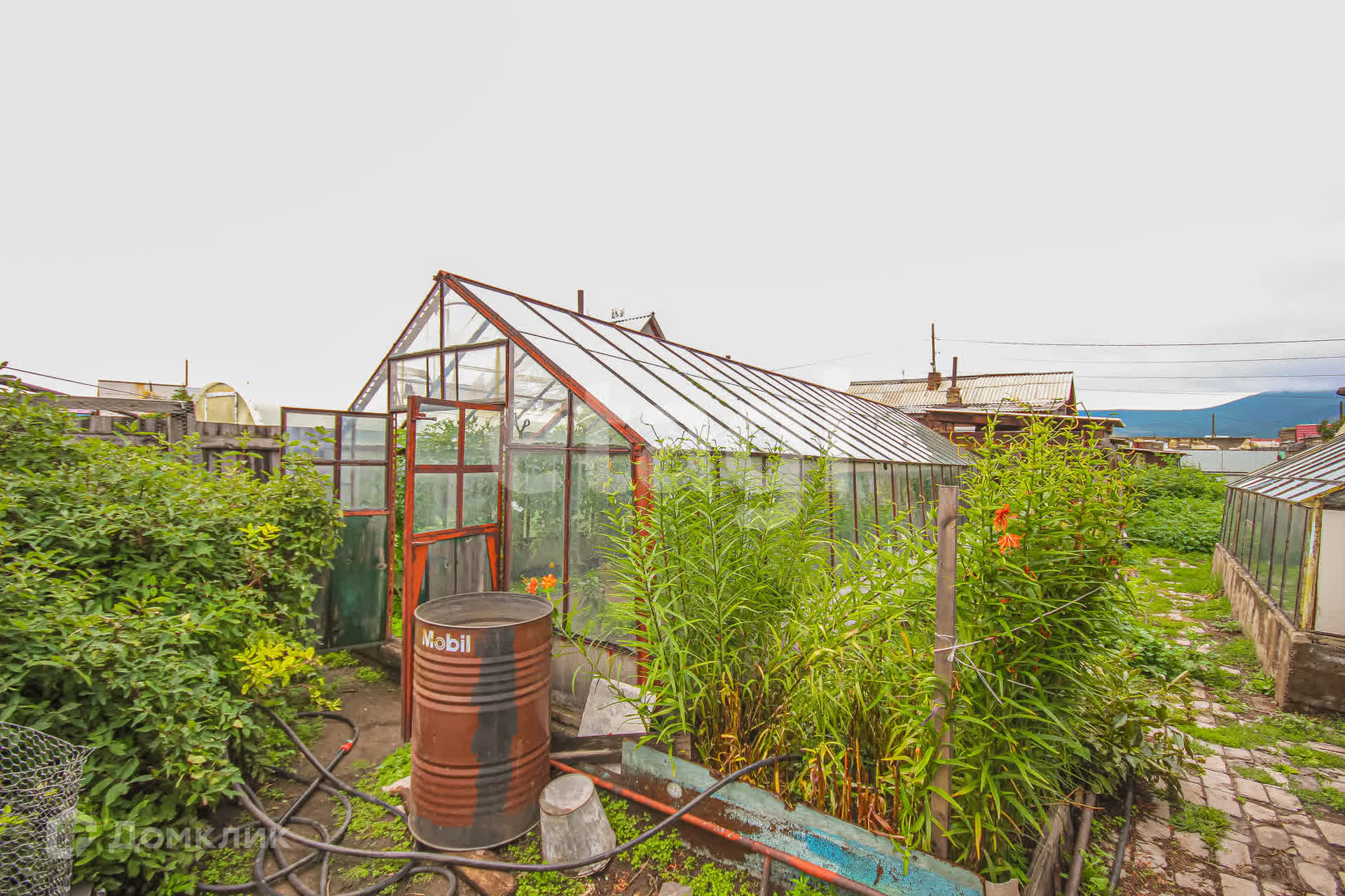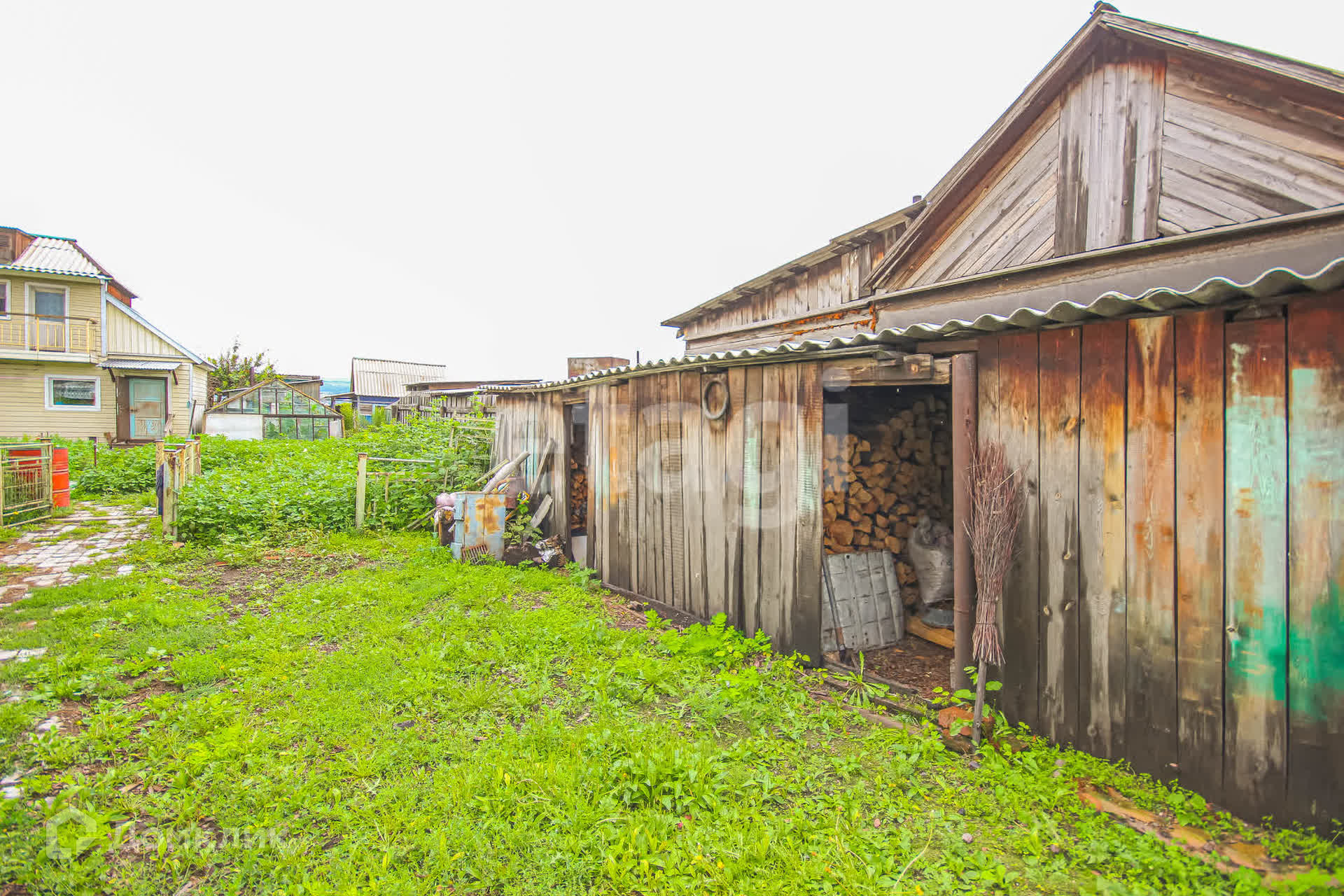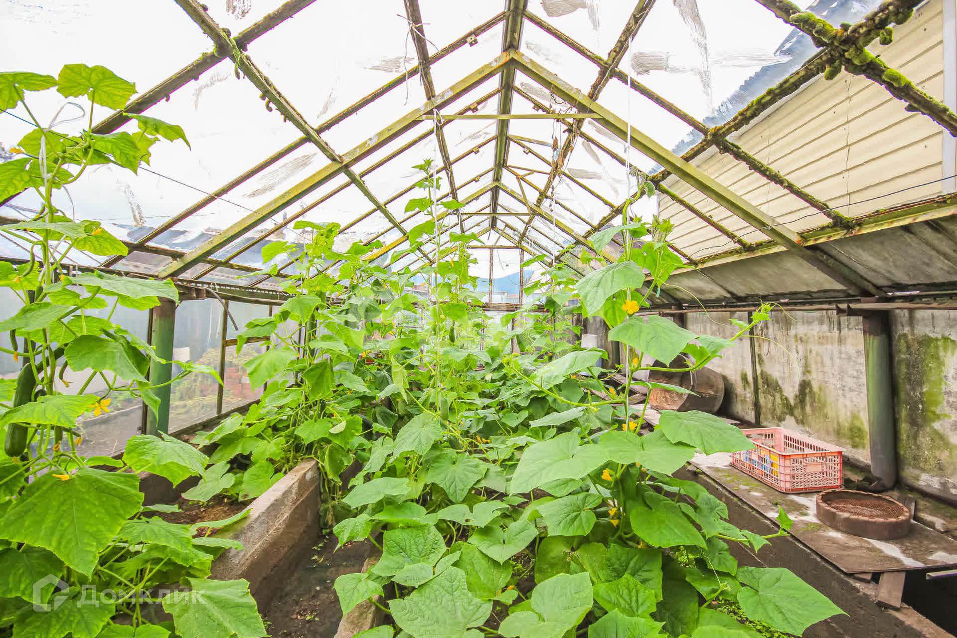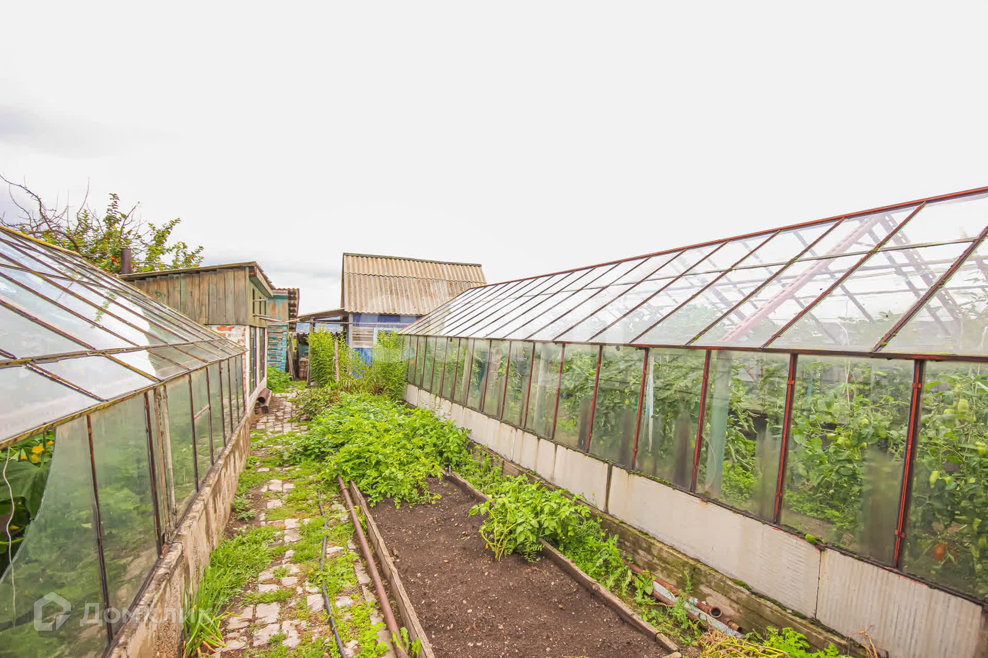 Участок разработанный: есть 2 теплицы, гараж ,баня и еще надворные постройки .Растут деревья и кусты :малина ,смородина ,картофель ,огурцы и помидоры. Весь урожай в подарок покупателю.