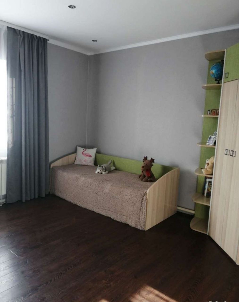 Стеклопакеты, ламинат, вытянутые стены,  радиаторы, санузел отделан кафелем.