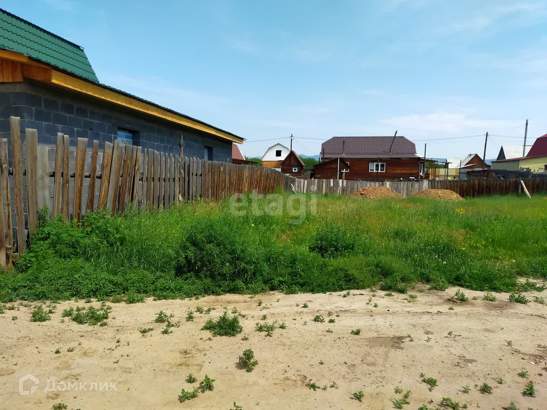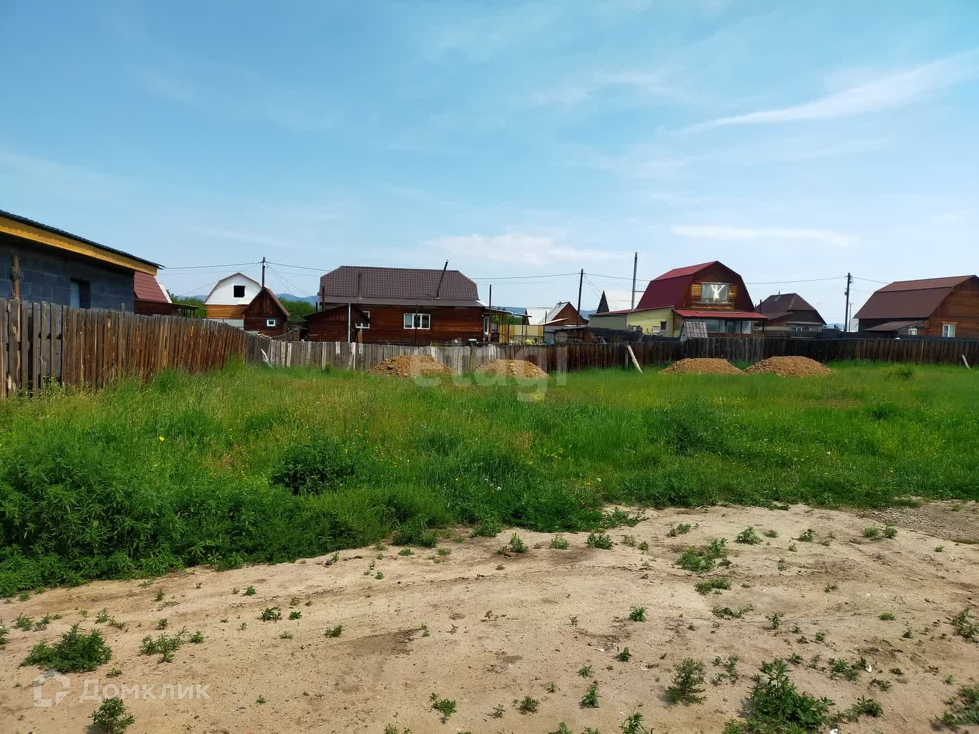 Участок ровный ,огорожен деревянным забором. Свет подведен, скважины нет (вода на глубине семи-десяти метров).